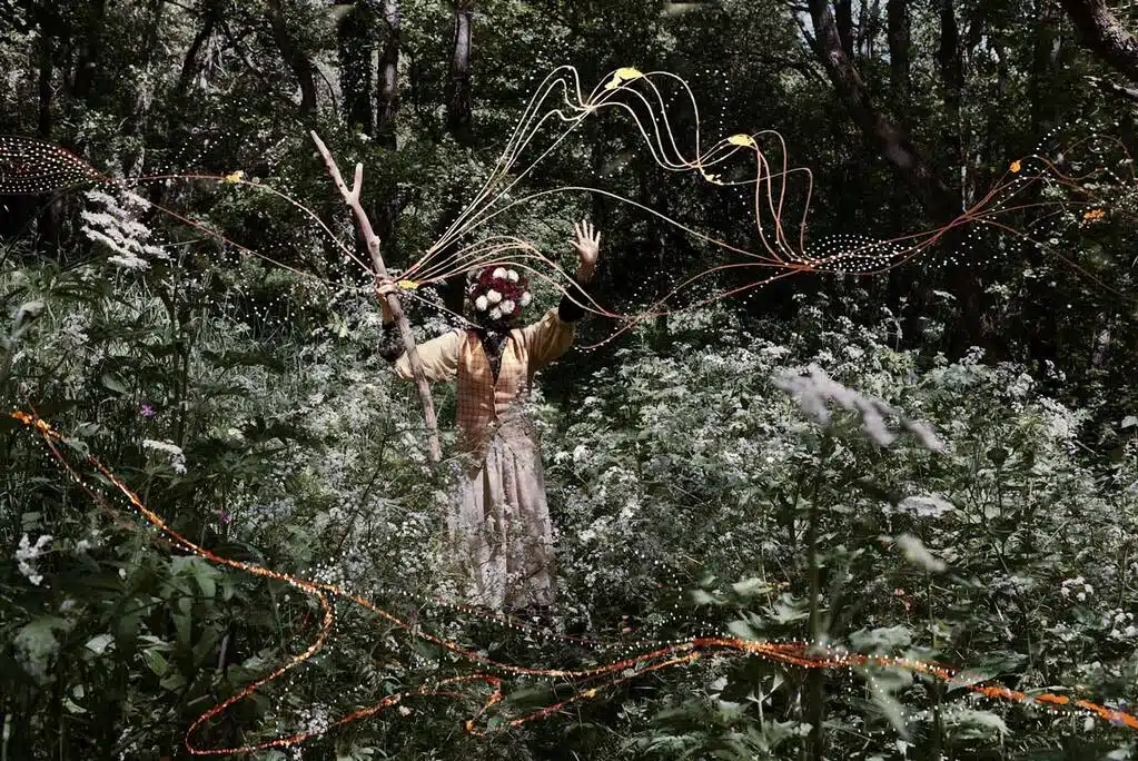 As fotografias evocativas no cerne de Digital Clouds Don’t Carry Rain estão situadas entre as árvores moribundas de Derbyshire, lar da Revolução Industrial. Nestes autorretratos, a artista imita poses das pinturas Casta do século XVIII, um gênero de arte feito no México durante o colonialismo espanhol para ilustrar hierarquias sociais racistas – classificando indivíduos de raças mistas dentro de um sistema de ‘castas’.