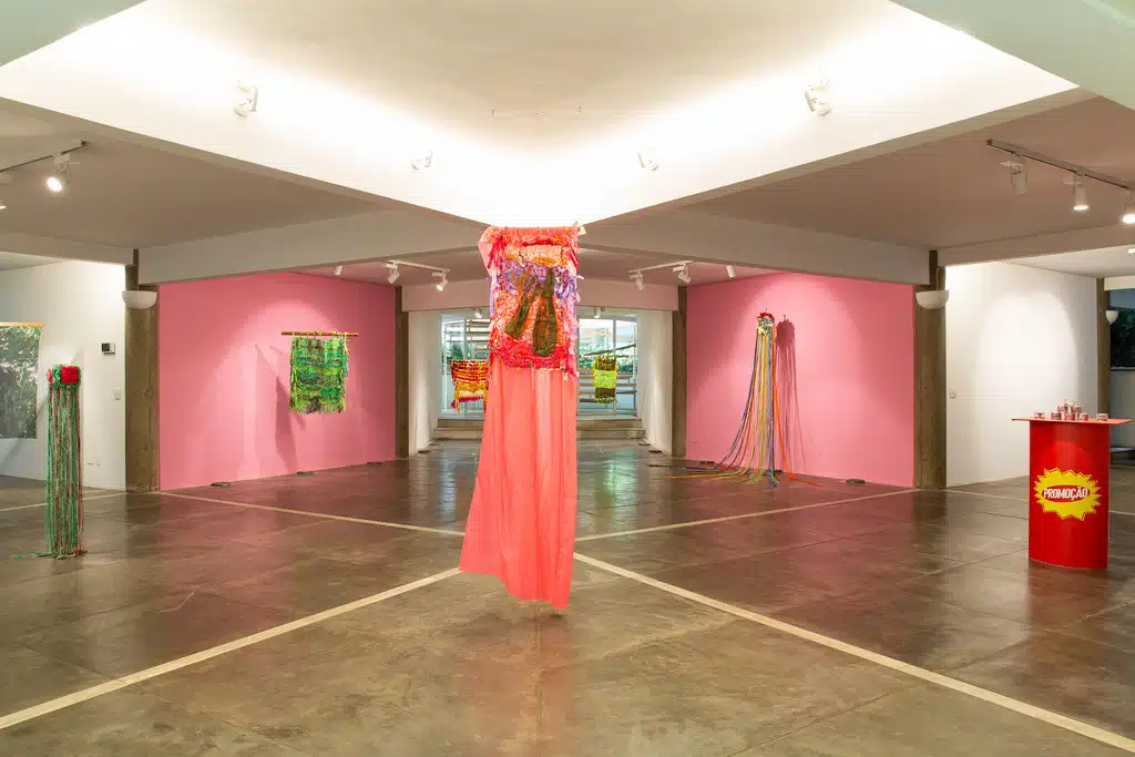 A exposição nos permite conhecer o início da trajetória artística de Naine Terena, que começou na década de 1990 com artes manuais e cênicas. Suas obras estão organizadas em núcleos como “Os outros”, “Eu sou uma árvore”, “Admirável mundo novo” e “Antes o mundo não existia”, com expografia que reflete sua experiência teatral e seu trabalho com têxteis.