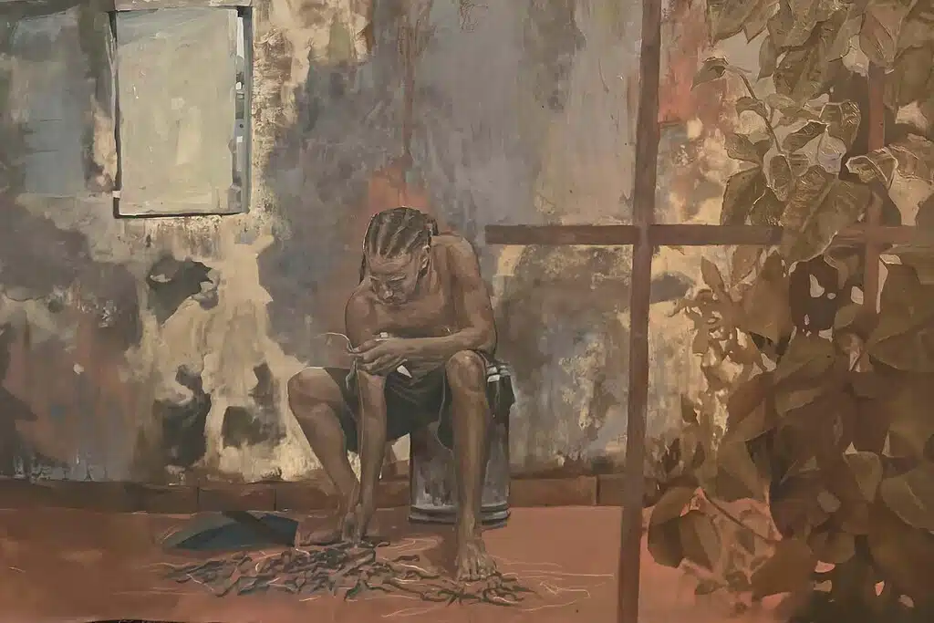 Como ressalta o curador, “Miguel Afa desloca seus mais recentes trabalhos para uma atmosfera da ordem do onírico. (…) Um jogo contínuo de reescrever o mundo a partir do encontro do corpo com a pintura”. Em sua dedicação incessante ao fazer, aprimorar, ascender, o artista reproduz, em tela, sua vivência diária de forma afetuosa amainando cenas duras da realidade com a qual convive. Pinceladas precisas adquiridas através da persistência de um artista autodidata determinado a “fazer a diferença”, aprimoram as técnicas utilizadas e apresentam emoção em pinturas de situações que, não corriqueiras, transmitem ‘vida real’. “Eu tento abordar as questões não objetivas, o contraponto da visão pré-estabelecida sobre nós, pretos e favelados. Abordo as relações afetivas, saberes locais e como intuitivamente cuidamos um do outro, seja no aspecto emocional ou físico”, define o artista.