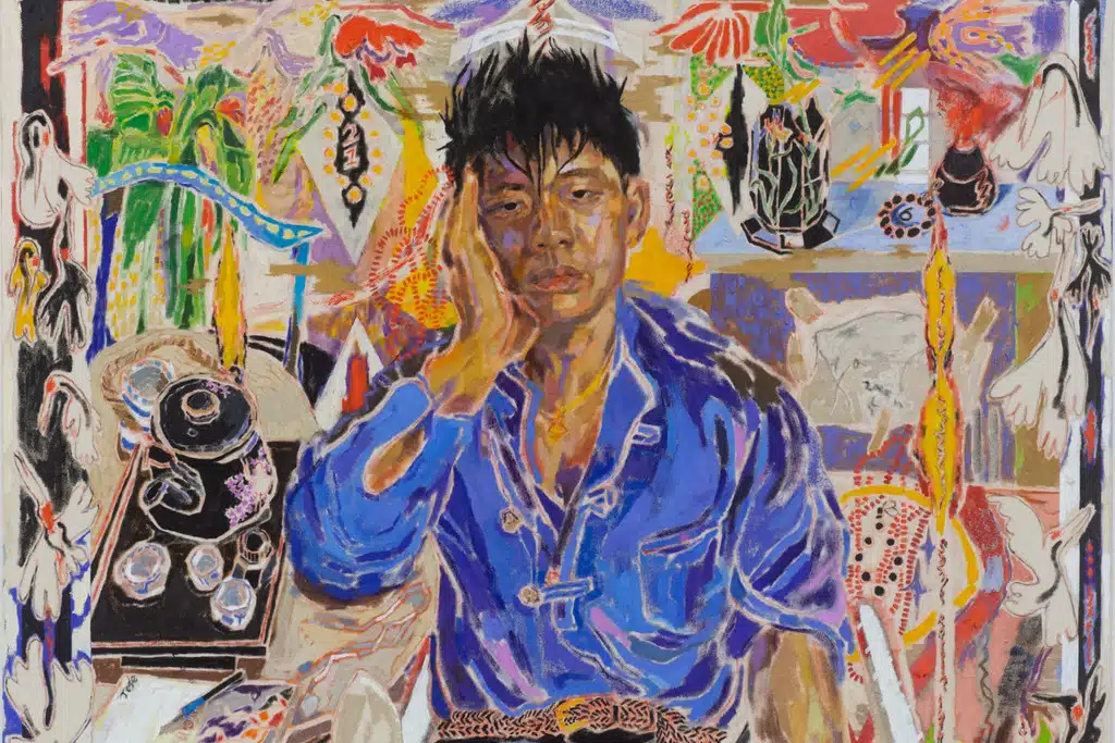 Em uma época de crescente violência contra as comunidades asiáticas nos Estados Unidos, Oscar yi Hou questiona o que significa ser “asiático-americano” e quem é considerado “norte-americano”. Oscar yi Hou: East of Sun, West of Moon, título de um poema do artista, compreende onze de suas recentes pinturas figurativas. Em algumas obras, yi Hou coloca seus amigos e ele mesmo como figuras da história do leste asiático e da cultura visual ocidental, desde imigrantes chineses do século XIX até Son Goku, da popular franquia de mídia Dragon Ball. Em outros, o artista retrata suas amigas, muitas das quais, como ele, se identificam como parte de uma comunidade criativa asiática, em papéis tradicionalmente brancos e masculinos, acabando com os estereótipos de longa data. Da mesma forma, yi Hou olha tanto para a cultura popular quanto para referências passadas, incluindo as coleções de arte asiática recentemente reinstaladas do Brooklyn Museum, em sua abordagem para essas composições que remete à colagem. O artista envolve seus temas com o que ele chama de iconografia de “cowboy chinês”, um caleidoscópio de imagens como bandeiras americanas, símbolos yin-yang, chapéus de cowboy e caligrafia chinesa. Através dessa justaposição (e de sua crítica sobre as calúnias contra o povo do Leste Asiático) yi Hou revela a complexidade da questão de identidade nacional, como evidenciado por sua própria origem sino-britânica. Agora morando no Brooklyn, ele afirma: “Embora eu seja apenas um norte-americano, sou resolutamente um asiático-americano”. Oscar yi Hou: East of Sun, West of Moon é organizado por Eugenie Tsai, Curador Sênior de Arte Contemporânea do Brooklyn Museum, com Indira A. Abiskaroon, Assistente Curatorial de Arte Moderna e Contemporânea.