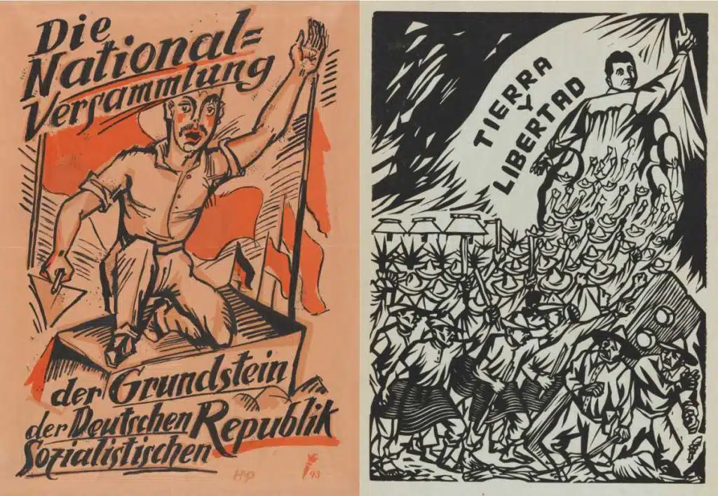 A exposição coletiva Pressing Politics: Revolutionary Graphics from Mexico and Germany explora os temas e as estratégias visuais compartilhados por dois momentos paradigmáticos da gravura política do século 20: o renascimento do grafismo do Expressionismo Alemão em resposta ao fim da 1ª Guerra Mundial, em 1918, e a formação do Taller de Gráfica Popular na Cidade do México no final da década de 1930. Embora enraizados em contextos sociais e históricos distintos, os movimentos de ambos os países responderam às suas respectivas convulsões na sociedade, na política e na imprensa para se comunicar em termos visuais vigorosos com o público de massa. Examinando pontos de intercâmbio diretos e indiretos, a mostra Pressing Politics considera os precedentes iconográficos do imaginário político dos artistas envolvidos em cada um desses movimentos a partir de uma ampla gama de trabalhos impressos que eles produziram e das condições que deram origem a sua arte. Com obras vindas principalmente da coleção do LACMA, a exposição ressalta o poder duradouro da imagem impressa e destaca as contribuições de artistas mexicanos e alemães para uma iconografia global do grafismo político.