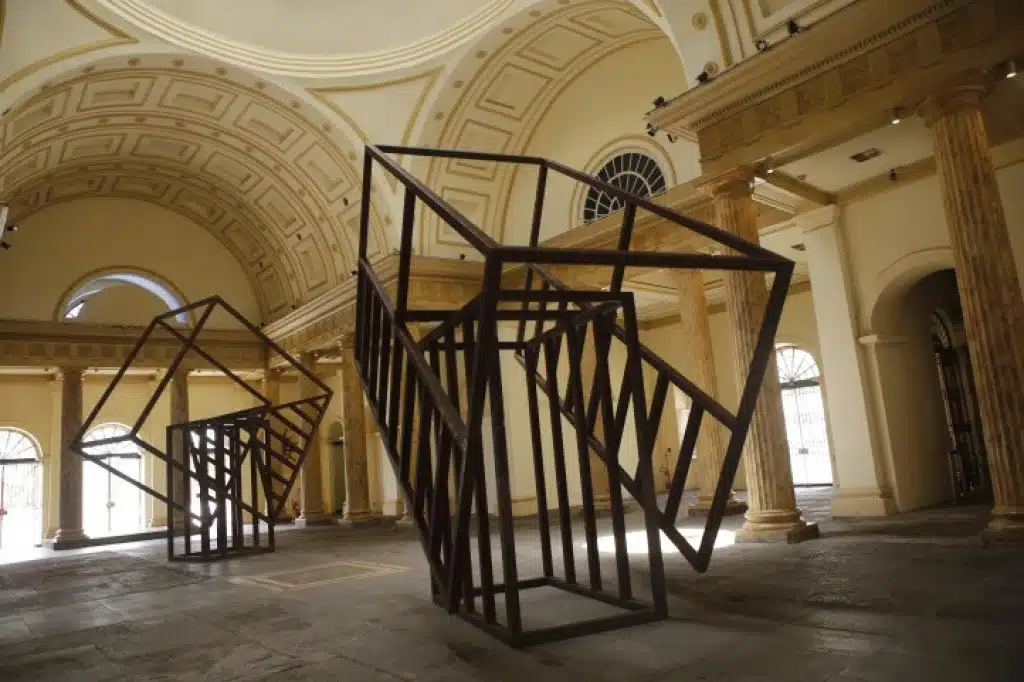 Com curadoria de Marcus de Lontra Costa e Rafael Peixoto, a individual Lugar Geométrico, de Raul Mourão, que abre a programação 2023 da Casa França-Brasil, reúne trabalhos em diferentes escalas que exploram as relações com a arquitetura histórica do prédio a partir das dicotomias entre dentro e fora, cheio e vazio, público e íntimo, instável e estável. Na mostra, Raul Mourão recria o ambiente de seu ateliê, com quatro esculturas cinéticas grandes, de até 5 metros de altura, além de desenhos e aproximadamente 40 maquetes de suas esculturas, entre 20 e 30 cm cada. O título da exposição, Lugar Geométrico, inspira-se em um conceito da geometria analítica para propor reflexões sobre as questões de pertencimento que atravessam a arte contemporânea, tomando as formas e linhas como ponto de partida. Para isso, a exposição traz trabalhos que exploram o movimento pendular em esculturas de ferro da série Rebel, com destaque para duas obras em grande escala criadas por Raul em 2020 que ocupam o grande átrio central da Casa França-Brasil. Além disso, em um dos salões laterais, serão apresentados maquetes e estudos de trabalhos já realizados e de séries ainda em desenvolvimento, transmitindo a sensação de uma visita ao ateliê e propondo ao público uma experimentação íntima do processo de criação do artista. “Na sala menor a curadoria optou por apresentar uma espécie de visita ao ateliê. Decidimos então reunir num mesmo espaço desenhos de diferentes técnicas e formatos, fotografias, pinturas, um vídeo e um conjunto de 36 maquetes que nunca havia sido mostrado anteriormente. Essa montagem meio caótica, onde vários meios (por vezes antagônicos) convivem, remete ao ambiente e às experiências que vão acontecendo e se sobrepondo cotidianamente no ateliê”, diz Mourão. “Em meio ao turbilhão de imagens e ideias da contemporaneidade Raul Mourão cria, constrói e ressignifica a essência construtiva na arte. Liberta de seus compromissos utópicos, a geometria se afirma como síntese de um discurso poético que acentua a atemporalidade da criação artística. Nesse encontro entre a objetividade do cálculo e a surpresa das poéticas dos movimentos pendulares, a produção de Raul Mourão dialoga de maneira impactante com a arquitetura da Casa França-Brasil e acentua a potência criativa do artista”, complementa Marcus de Lontra Costa, que divide a curadoria com Rafael Fortes Peixoto.