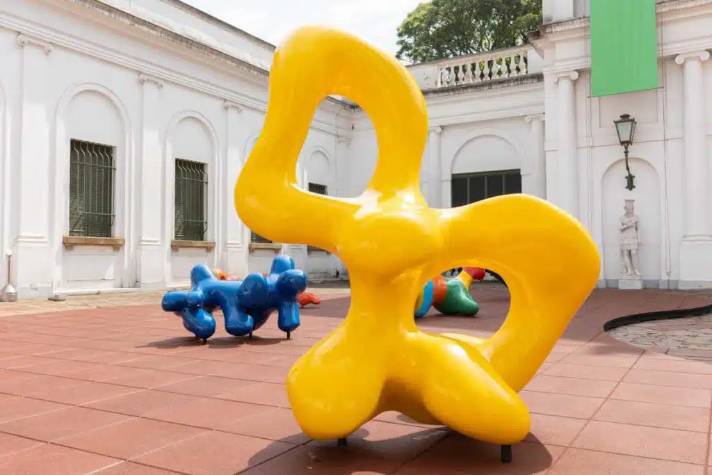 A exposição “Esculturas Lúdicas”, concebida especialmente para o mês das crianças, propõe ao público uma nova maneira de interagir com as obras criadas pela escultora Sara Rosenberg: elas podem ser usadas como pontos de partida para brincadeiras em vez de ficarem sobre um pedestal. São peças destinadas à experimentação do público infantil em sua ampla diversidade, por meio da experiência tátil e motora. A curadoria da crítica de design Adélia Borges marca a inauguração do pátio interno como um novo espaço de programação, ocupado pelas as grandes peças orgânicas e coloridas de Sara Rosenberg, para o público interagir. Salas expositivas internas oferecem um território de brincar coberto e apresentam os processos criativos da artista e uma síntese de seu percurso profissional, com destaque para a sua atuação como designer de produtos, em parceria com a irmã Anete Ring. Uma das missões da nova exposição do MCB é dar um território de brincar para o público da cidade, com cada vez menos espaços abertos de convivência e fruição integrada à arte. Para Sara Rosenberg, a exposição deixa suas obras mais próximas das crianças e também dos pais. “As esculturas lúdicas, por seu caráter aberto e interativo, propiciam experiências estéticas e imaginativas, convidando as crianças para um brincar mais criativo, um mergulho, um trampolim de sensações que ajudam a estabelecer um pertencimento no aqui e no agora”, comenta a artista. “Construídas em fibras de vidro, as esculturas são feitas para serem usadas igualmente por crianças com ou sem necessidades especiais. Como elas só se completam no movimento dos corpos sobre e através delas, estão disponíveis para, mais do que o toque, o livre uso”, afirma a curadora Adélia Borges.