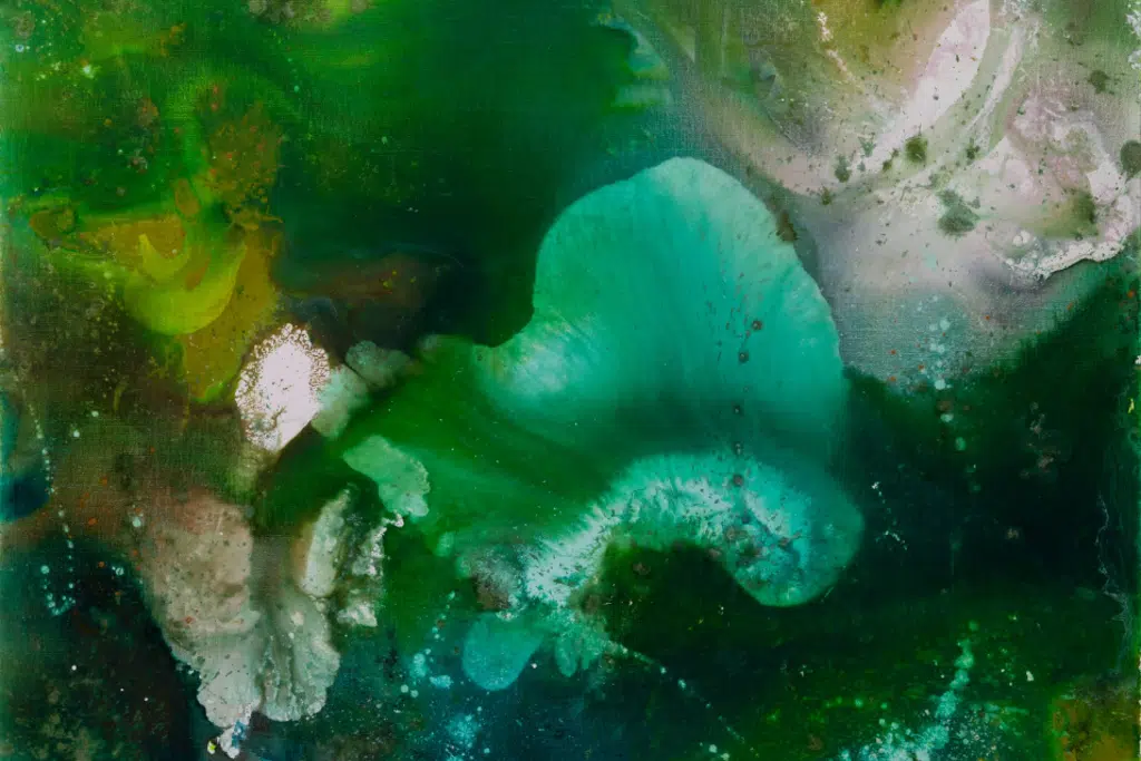 Dominadas pela cor verde, as novas pinturas de Weatherford fazem referência visual a ambientes arborizados e aquáticos. Algumas delas também reavivam a combinação de imagens empíreas e oceânicas que apareceram em seu trabalho décadas atrás. Há também alusões ao espaço exterior, um interesse refletido e mantido pelas fotografias da NASA na coleção de Weatherford e por suas visitas ao Planetário Hayden em Nova York.