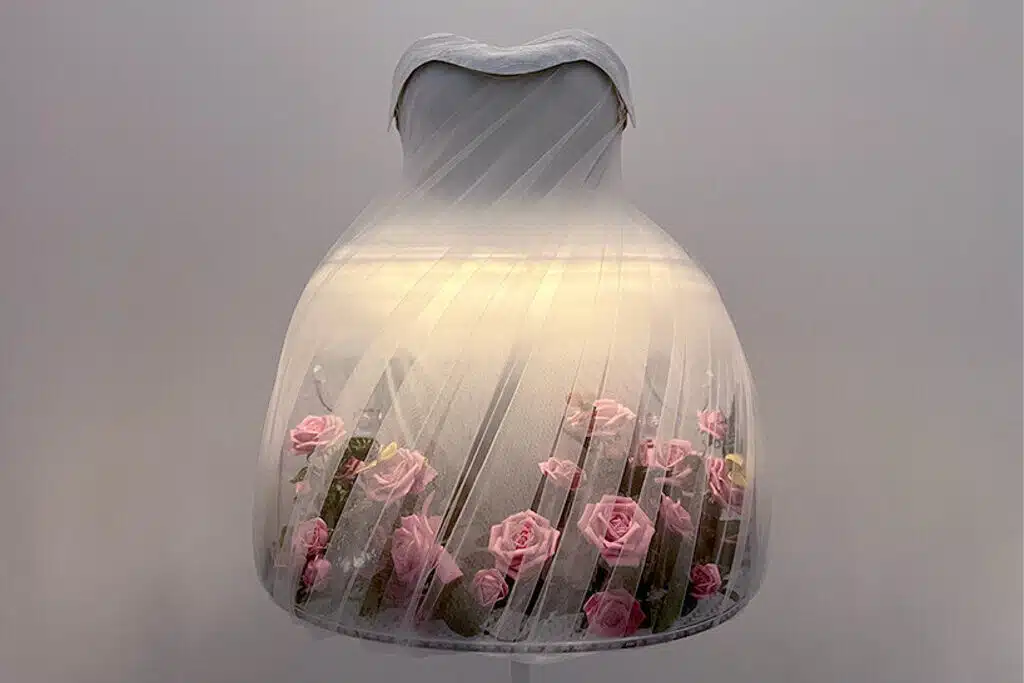 A exposição de primavera de 2024 do Instituto de Figurinos, “Sleeping Beauties: Reawakening Fashion”, reativa as capacidades sensoriais das obras-primas da coleção do Museu por meio de pesquisa direta, análise de conservação e diversas tecnologias — desde ferramentas de ponta de inteligência artificial e imagens geradas por computador até formatos tradicionais de raios-x, animação em vídeo, projeção de luz e paisagens sonoras.