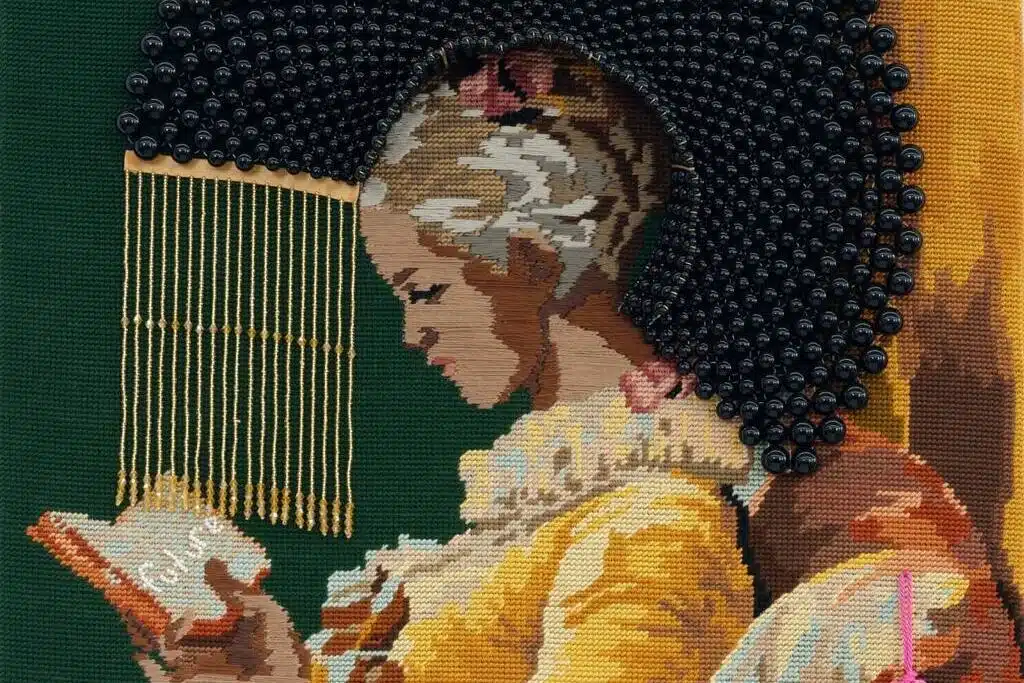 A Roberts Projects apresenta a primeira exposição da galeria com a artista Suchitra Mattai, intitulada In the absence of power, In the presence of love. A mostra apresenta novas pinturas em técnica mista, tapeçarias e uma instalação de escultura macia que evocam a herança indo-caribenha da artista. O trabalho de Mattai dialoga com o tema e a forma de paisagens pastorais europeias e a figuração, bem como com as pinturas em miniatura indianas. Ao unir processos artesanais, tecelagens suntuosas e técnicas tradicionais, a artista retrata heroínas não brancas resolutas, substituindo heróis e colonizadores e reivindicando um passado patriarcal. A história ancestral da artista informa seu diálogo com a pintura europeia. Os bisavós de Mattai foram levados do estado de Uttar Pradesh, na Índia, para a Guiana, na América do Sul, como trabalhadores contratados sob o domínio colonial britânico. A Guiana, América do Sul, é considerada parte do Caribe devido à sua história, cultura e proximidade compartilhadas. Quando a escravidão terminou no Caribe no século XIX, os britânicos procuraram em sua maior colônia, a Índia, por trabalhadores para as plantações de açúcar. Mattai descreve seu processo como um de “brown reclamation”, retrabalhando imagens originais para contar novas histórias. Bordado, ponto cruz, miçangas e objetos encontrados inserem o trabalho manual das mulheres nas paisagens pictóricas tradicionais. Em outras obras, as histórias heróicas, figuras, animais, padrões e paisagens das pinturas em miniatura indianas são reconfiguradas. Aqui, os heróis são substituídos por heroínas – empoderadas e míticas, mas também empáticas e acessíveis. Elas são guerreiras pacíficas e incluem tanto jovens quanto idosas. Em Future Tense (2023), uma mulher lê silenciosamente sobre o futuro cercada por bordados florais e um halo preto de miçangas, combinando mito, memória e contos populares. A artista aprendeu costura, bordado e outras técnicas com suas avós e utiliza objetos de família em seu trabalho como um reconhecimento de sua ancestralidade. Tapeçarias vibrantes tecidas a partir de saris (roupas usadas por muitas mulheres do sul da Ásia) unem metaforicamente os membros da diáspora sul-asiática, que estão espalhados pelo mundo – Índia, Europa e Américas. A cada ponto e pedaço de tecido, a artista medita sobre as vidas de sua linhagem materna. As esculturas “frutas” (“phala” em hindi), pendentes na exposição, existem em uma relação simbiótica com o ambiente. Suspensas e orgânicas, as esculturas infundem o espaço da exposição com a ancestralidade e a identidade indo-caribenha da artista. Esta é a primeira vez que a artista utiliza saris trançados para criar esse tipo de instalação, criando um espaço onde a aura dos corpos e espíritos femininos está presente. In the absence of power, In the presence of love reconhece o passado e idealiza um futuro alegre para as mulheres e pessoas marginalizadas.