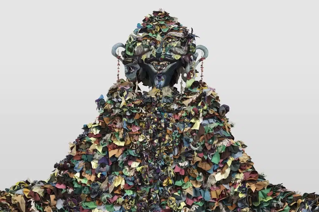A nova escultura da artista, intitulada The cure will be completed in my body, silence your spirit to let me reach you, my skin will secrete angels and you will have forgotten and forgiven all (2023), evoca um mundo mítico de sua própria criação. Lewis cria em iterações, concebendo suas séries de trabalhos de forma semelhante a capítulos espalhados por diferentes volumes. A mais recente exploração da Saint Mozelle de Lewis — que ela descreve como uma divindade tutelar — forma o centro da instalação e transborda com flores que se transformam e outras pequenas formas de vida. Os materiais, incluindo joias encontradas, retalhos de couro, peles de tambor, dentes e outros talismãs, carregam atributos únicos e mistérios além do que o olho pode ver, assim como o espírito de Mozelle em si.