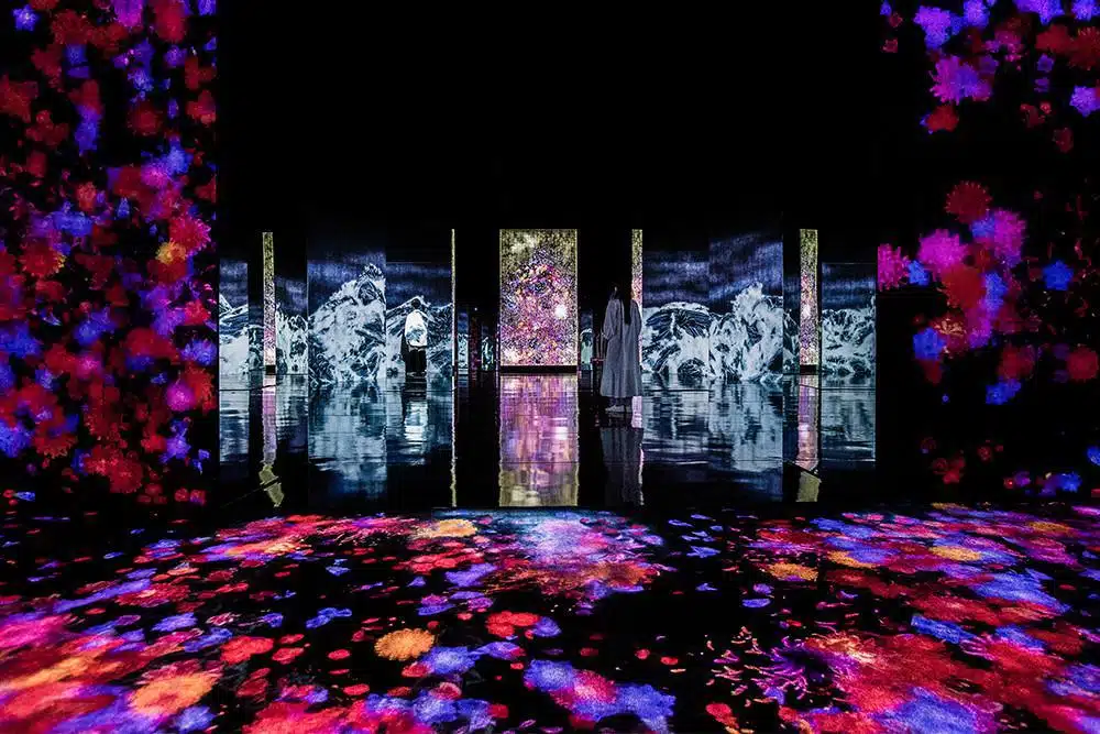 A instalação imersiva TeamLab: Impermanente Flores Flutuando em um Mar Eterno, apresentada no Farol Santander, traz uma série de projeções que envolvem e deslocam o espectador de sua localização real, levando-o a um contato profundo com o entorno e com suas sensações diante de estímulos diversos, em que a poesia e a tecnologia são aliadas. O teamLab é um coletivo de arte internacional formado em 2001. Sua prática colaborativa busca navegar a confluência entre arte, ciência, tecnologia e natureza. Esse grupo interdisciplinar de especialistas inclui artistas, programadores, engenheiros, animadores CG, matemáticos e arquitetos e pretende explorar, por meio da arte, a relação entre o indivíduo e o mundo, além de novas formas de percepção. Esses integrantes são de diversas cidades ao redor do mundo, de diversos países, a saber: Nova York e Palo Alto (EUA), Londres (Inglaterra), Pequim (China), Hong Kong (território autônomo a Sudeste da China), Genebra (Suíça) e Seul (Coreia do Sul). Para entender o mundo em que vivem, as pessoas o separam em entidades independentes, distinguindo limites entre elas. O teamLab busca transcender esses limites na nossa percepção do mundo, estabelecendo como ponto de partida uma visão holística e integrada do homem com o universo à sua volta, na relação entre o indivíduo e o mundo e na continuidade do tempo. Tudo existe em um contínuo longo e frágil, porém milagroso e sem fronteiras. As obras do teamLab fazem parte do acervo permanente do Museu de Arte Contemporânea de Los Angeles, da Galeria de Arte de New South Wales, em Sydney, da Galeria de Arte de South Australia, em Adelaide, do Museu de Arte Asiática de San Francisco, do Asia Society Museum, em Nova York, da Coleção de Arte Contemporânea Borusan, em Istambul, da Galeria Nacional de Victoria, em Melbourne, e do museu Amos Rex, em Helsinque.