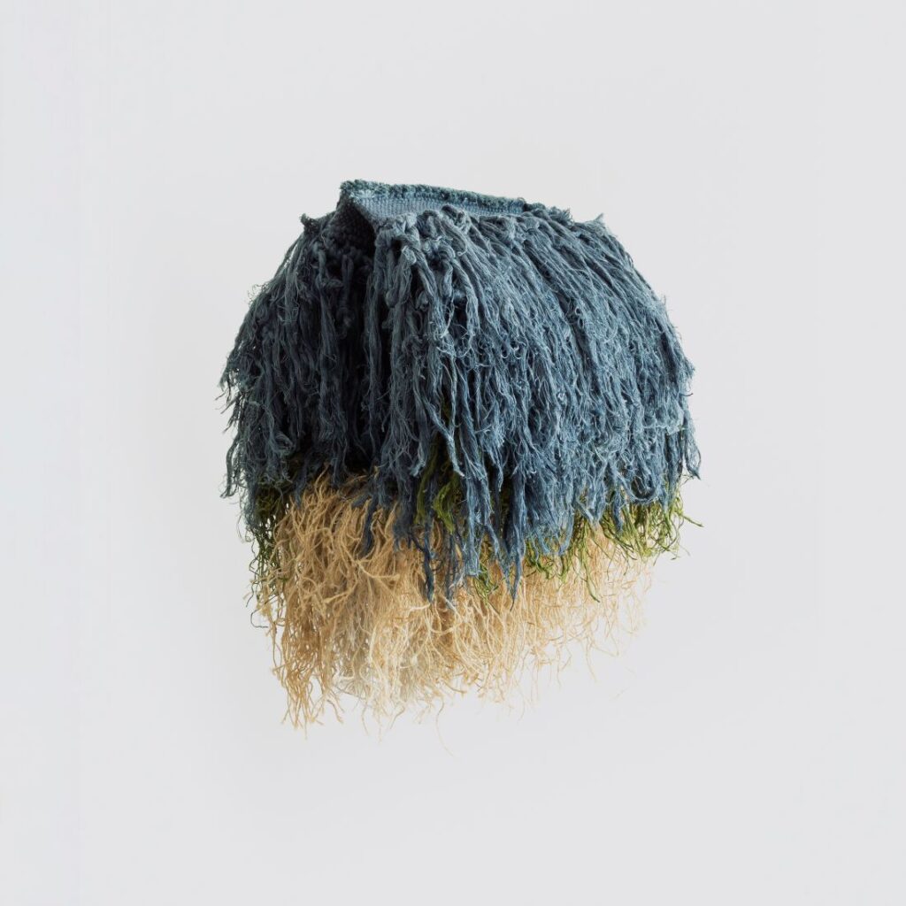 Território sagrado ainda é composta por obras têxteis e escultóricas feitas com fibras naturais — algodão, linho e sisal — tingidas artesanalmente no ateliê da artista, sobretudo com índigo e cochonilha. Esses trabalhos reforçam a dimensão material e simbólica da exposição, na qual o fazer manual, o tempo do corpo e o conhecimento ancestral se afirmam como formas de pensamento e ação política.
