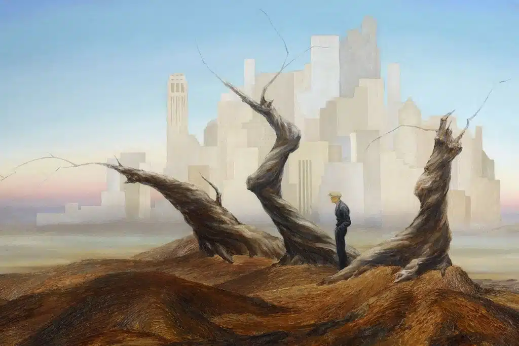 The Big World, concentrando-se nas representações da paisagem na coleção do The Wolfsonian, desafia as expectativas da arte paisagística ao ir além de cenas bucólicas para revelar vistas em transformação da era moderna representadas em pinturas, artes decorativas e até mesmo em um grande piano. A exposição traça um curso desde o final do século XIX até a primeira metade do século XX, apresentando a história do crescimento global e das ideias em evolução sobre o mundo ao nosso redor — desde a natureza intocada até sua alteração radical nos centros urbanos e industriais modernos, até panoramas arruinados pela guerra e pelo desrespeito ambiental.