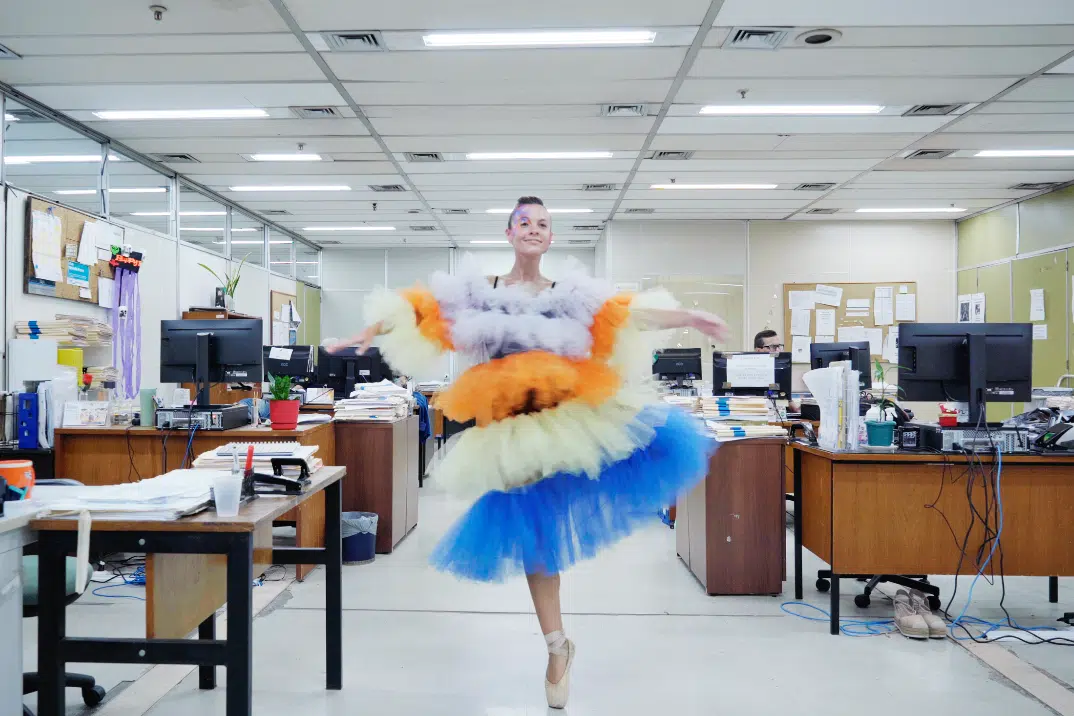 Num jogo de autoficção, a artista convida o stylist José Camarano para produzir os figurinos desses recém-criados personagens, trazendo para as imagens descritas formas, cortes, pesos e movimentos. Após a concretização das ideias, os participantes puderam vestir as peles que haviam criado e habitar o espaço burocrático e monótono do escritório de maneira que achassem melhor, desenvolvendo uma série de gestos que brincavam com as coreografias do dia a dia de trabalho, introduzindo elementos curiosos e extra-cotidianos que levam o filme para uma atmosfera surrealista. Por entre as mesas da Secretaria, uma bailarina dança, um homem computador escuta os sons das paredes, uma entidade branca conversa com as caixas de arquivo que costumava organizar.
