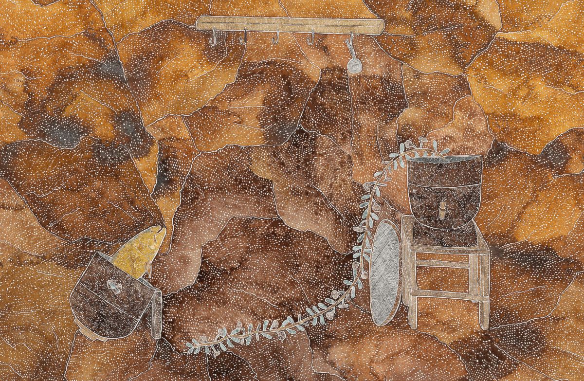 Mostra de Bernardo Ortiz explora o desenho como forma de pensamento e observação do mundo, investigando as relações entre palavra, imagem, memória e acaso.