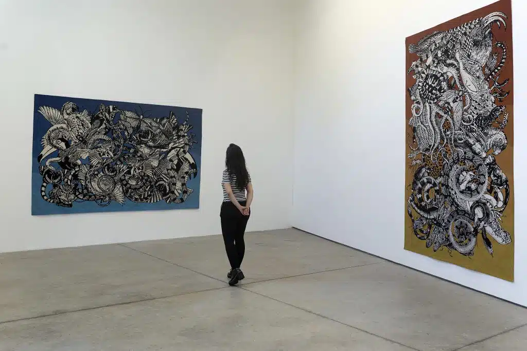 Não é de hoje a pesquisa da artista em torno da significação e representação da fauna brasileira ou da tapeçaria como suporte, mas dessa vez ela traz inaugura a mostra com obras quase inteiramente inéditas, com exceção de “Selvagem” (2021) que foi exibida ao público em Miami em dezembro do ano passado.