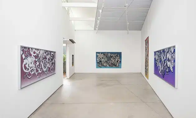 A inauguração dessas obras no espaço da Galeria Luciana Brito não poderia ter sido mais assertiva, ao entrar você percorre todo o espaço verde dos jardins da galeria até chegar à última sala onde se encontra a mostra de Silveira. A beleza da atmosfera do espaço expositivo límpido se contrastam estampas das tapeçarias que sobrepõem caoticamente as figurações pé de galinha, garras, bicos e caudas.