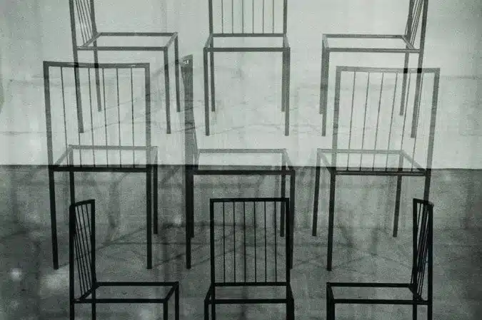 Sem título, cadeira Unilabor, São Paulo, Brasil, 1954/1997. Superposição de imagens no fotograma. Fotografia em gelatina e prata sobre papel fibra. Série Fotoformas (imagem: Geraldo de Barros / Acervo Instituto Moreira Salles / reprodução: Sergio Guerini / Itaú Cultural)
