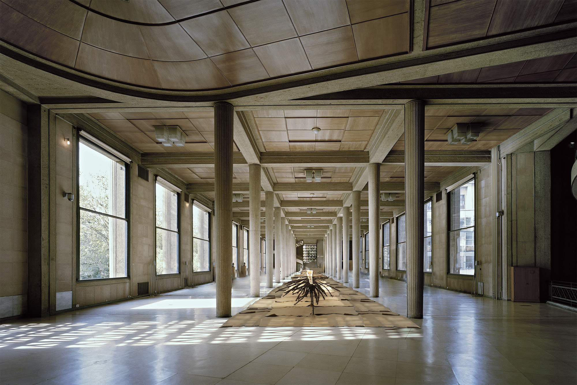 em 2019, o Palais d’léna (Economic, Sicial and Enviromental Concil – CESE) convida Giuseppe Penone para mostrar seu trabalho na magnífica hypostyle hall do Palais d’léna. Para sua primeira exposição em Paris desde 2013, organizada em associação com a Galerie Marian Goodman, o artista escolheu apresentar a obra monumental “Matrice di linfa” [Matriz de seiva], acompanhada de duas esculturas inéditas. Criado a partir de uma árvore despida da forma que tinha aos oitenta anos de idade, “Matrice di linfa” foi também selecionada para ecoar o oitava aniversário da obra prima arquitetônica de Auguste Perret. Foi dada a Penone total liberdade criativa para ocupar a sala hypostyle no palácio, um enorme espaço com colunas de 7m de altura, onde o artista instalará sua obra de 43 metros de comprimento.O projeto acontece durante a semana de arte de Paris, que gira em torno da programação da FIAC.