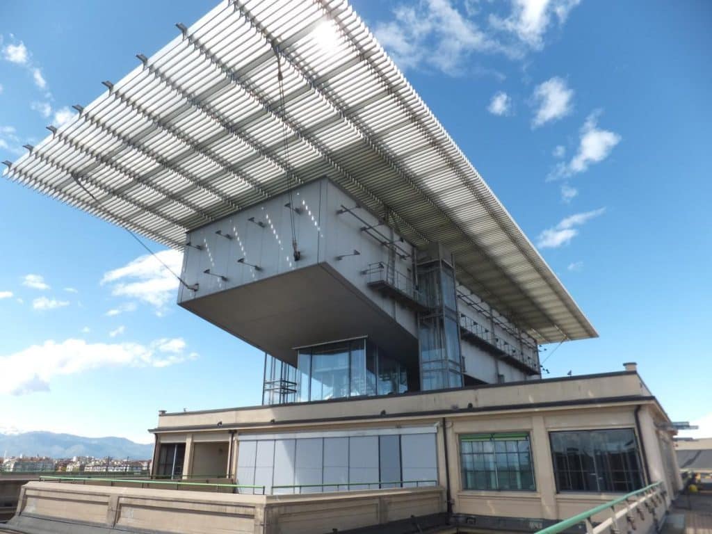 The Pinacoteca Giovanni e Marella Agnelli is an art gallery in Turin, Italy. It opened in 2002 on the top floor of the Lingotto complex, where a “scrigno” or 450 square-metre steel structure designed by Renzo Piano is raised 34 metres off the test track on the roof of the plant. Its style represents a crystal spaceship, referring back to the original building’s futuristic style. Its permanent collection is a selection of paintings and sculptures from Gianni and Marella Agnelli’s private collection such as Renoir’s Blonde Bather and Manet’s La Négresse as well as paintings by Matisse, Canaletto, Tiepolo, Canova, Piscasso and Modigliani, while it also puts on temporary modern art exhibitions.