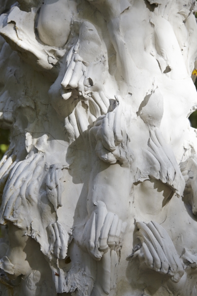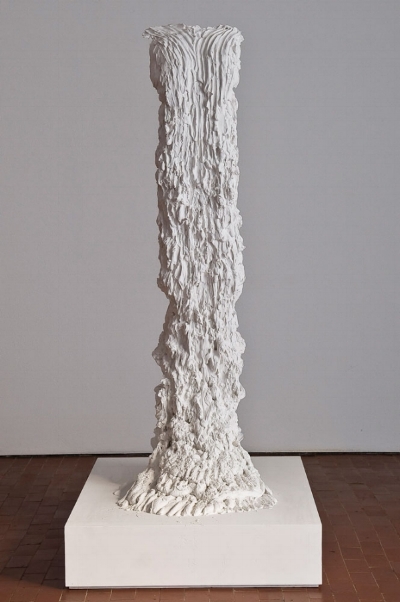 A primeira vez que conheci o trabalho de Juliana Cerqueira Leite, estava estudando História da Arte em Londres, e uma de suas esculturas ocupava um platô entre escadas do Courtauld Institute. Em 2009, numa época na qual a arte contemporânea fazia pouco mais sentido que a física quântica, aquela intervenção no espaço era um sopro de ares nunca antes sentidos, cheia de mistério e fascinação. Leite, brasileira nascida em Chicago e hoje radicada em Nova York, tem uma capacidade ímpar de criar objetos atrativos e repelentes em igual medida, especialmente nesta série de trabalhos que parecem ora comida, ora material de construção, feitos a partir de resina e gesso e evocando vazios do corpo como molde original. Vistas de certos ângulos, essas peças são o corpo em si, por outros apenas a casca de algo que já cresceu e partiu, deixando para trás apenas um resto de evidências. Outras vezes seu trabalho também nos lembra elementos da natureza realizados em materiais industriais (ou vice-versa), em formas animalescas e acabamentos artificiais.