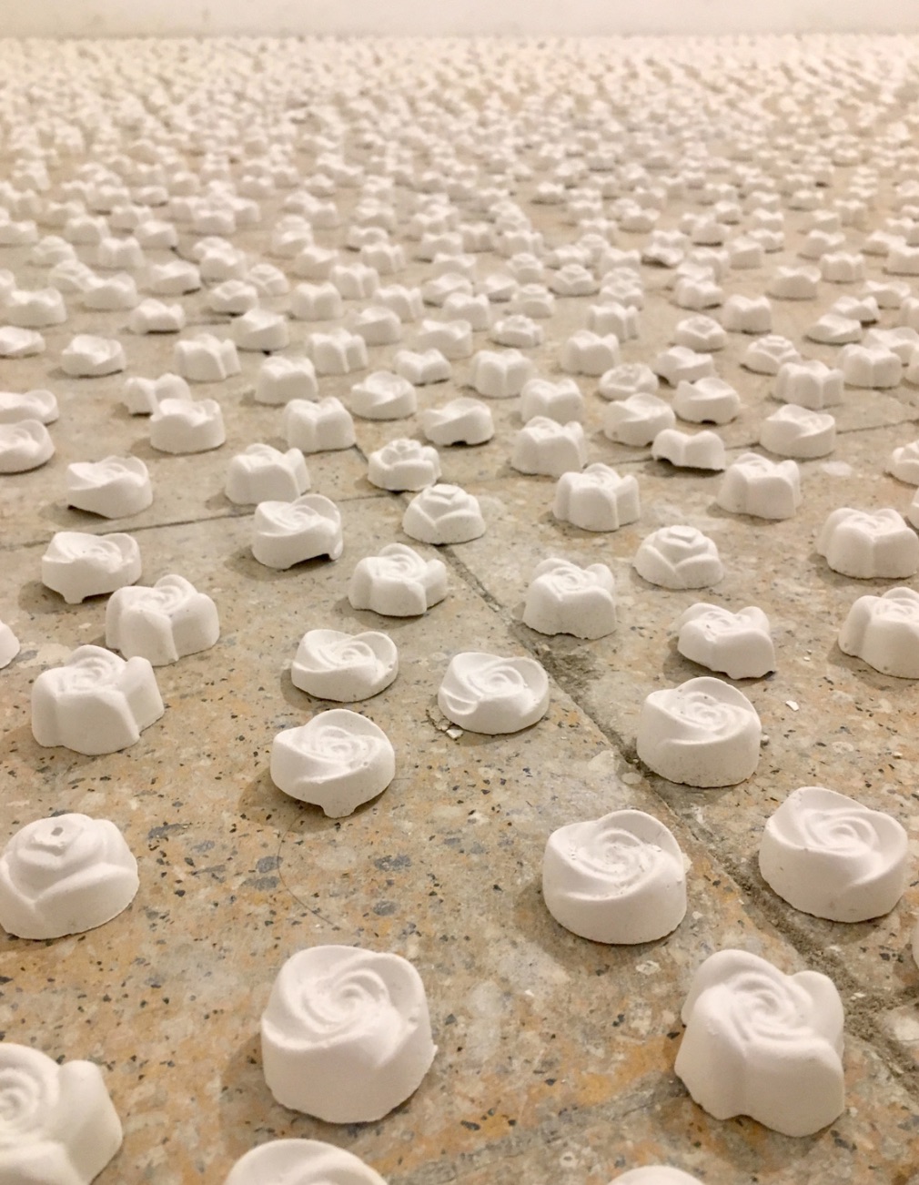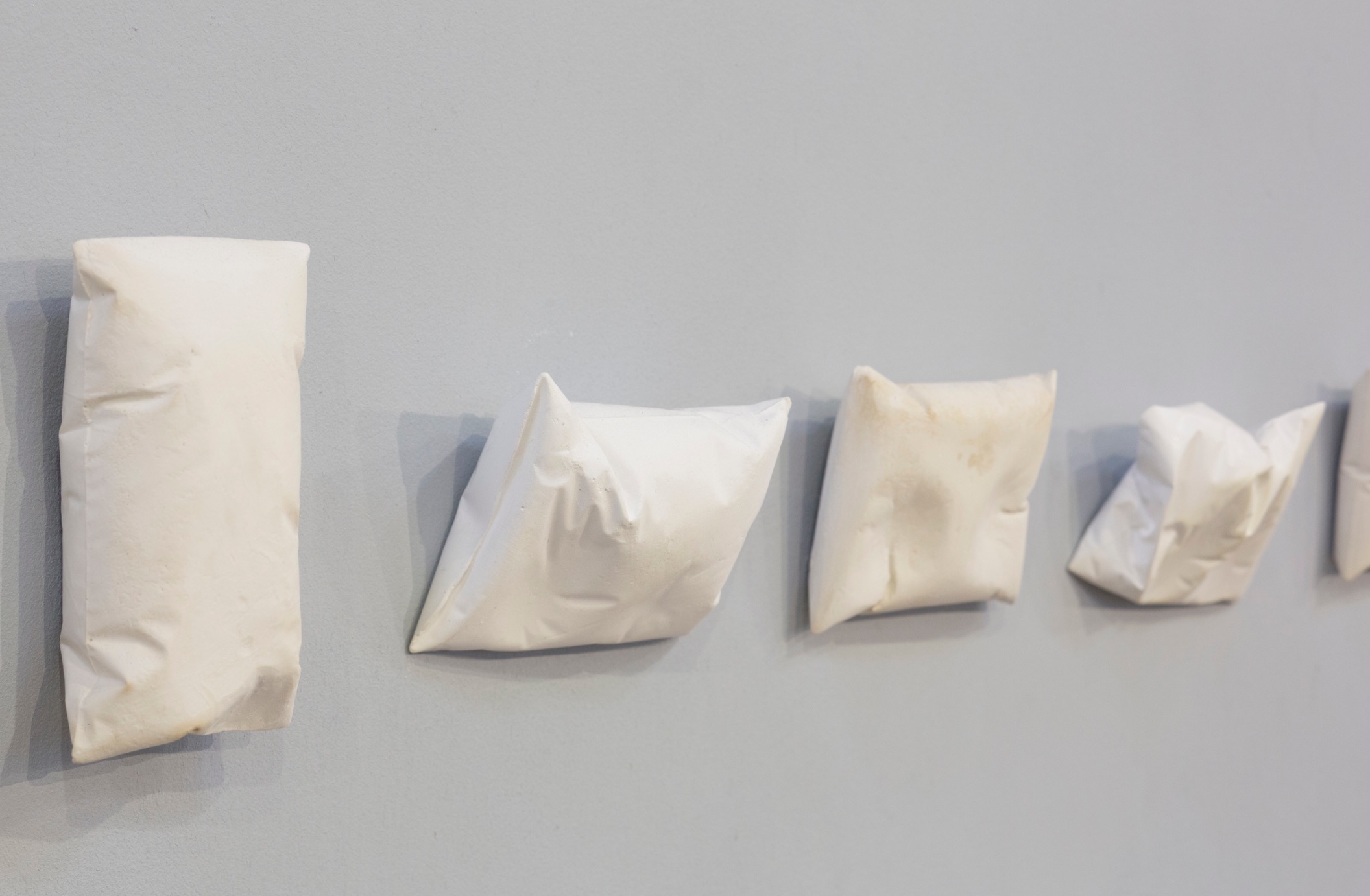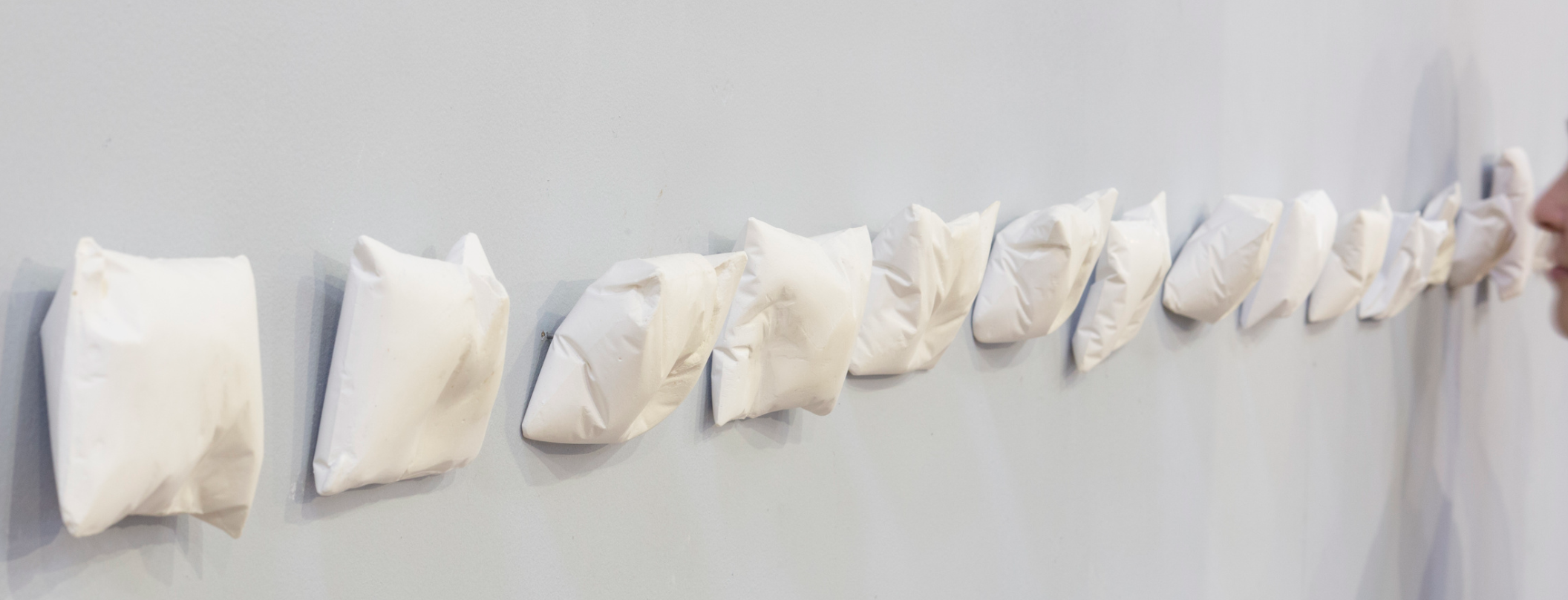 Karola Braga é bacharel em Artes Plásticas pela Fundação Armando Alvares Penteado (FAAP). Sua produção lida com diferentes e variados suportes, inclusive explorando outros sentidos que não a visão. Para além de trabalhos em vídeo, pesquisas em performance, do uso da escrita, e da criação de esculturas e pinturas, a artista muitas vezes emprega cheiros e odores em contextos instalativos. Em 2018, durante uma residência no Irã, por exemplo, realizou a obra Gole Mohammadi [flores do profeta Maomé], que consiste em uma vídeoinstalação perfumada composta por milhares de rosas de gesso feitas com golāb (água de rosas produzida no Irã) e uma projeção audiovisual. Já em Desde quando você se foi, 2018, Braga moldou pequenas esculturas em gesso no formato de almofadas, travesseiros, superfícies macias, e com perfumes explorou a noção de um corpo, de rastros e vestígios deixados como indício de presença.
