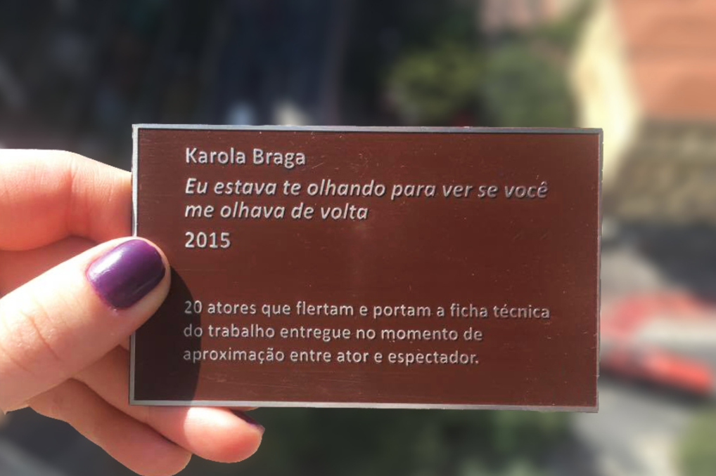 Outros trabalhos de Karola Braga são menos introspectivos, como o projeto TransMissão fm, de 2016, que consistia na instalação de uma rádio pirata perto da Praça da República, em São Paulo, com uma programação voltada para a comunidade LGBT. A rádio funcionava como uma estação normal, tocando músicas, trazendo entrevistas e debates, além de programas com leituras de contos eróticos durante a madrugada. Entre suas performances destaca-se Eu estava te olhando para ver se você me olhava de volta, realizada em 2015 com 20 atores que flertam entre si e com os transeuntes ao redor. A ação se deu durante a ocupação do Grupo Agosto no evento das Satyrianas na Praça Roosevelt, em São Paulo. Os 20 atores contratados (jovens e adultos. Mulheres e homens. Cisgênero e transgênero) para flertar durante o evento portavam a ficha técnica do trabalho e a entregavam no momento em que houvesse uma aproximação com o espectador – em seguida, passavam a buscar um novo flerte.