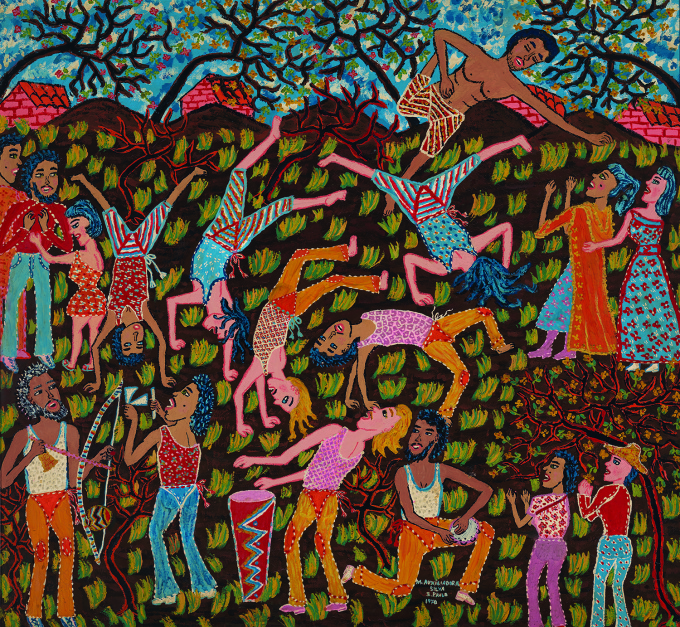 No ano dedicado às histórias afro‑atlânticas no MASP — as histórias dos fluxos e dos refluxos entre a África e as Américas através do Atlântico —, a exposição de Maria Auxiliadora (1935‑1974) assume uma urgência. A pintura delicada, precisa e pungente da artista retrata seu cotidiano e sua cultura, atravessando muitos temas afro‑brasileiros: a capoeira, o samba, a umbanda, o candomblé, os orixás. Maria Auxiliadora representa também o dia a dia de seus familiares e de seus amigos nos subúrbios de São Paulo, especialmente nos bairros da Brasilândia e da Casa Verde. De origem humilde, descendente de escravizados, Maria Auxiliadora inventa um outro modo de pintura, longe dos preceitos acadêmicos e modernistas. Uma técnica singular se tornou sua assinatura: mediante uma mistura de tinta a óleo, massa plástica e mechas do seu cabelo, a artista construía relevos na tela. Num contexto e numa cultura em que, na história da arte, as coleções de museus são dominadas por representações e gostos eurocêntricos, brancos e elitistas, a obra de Maria Auxiliadora ganha o sentido de resistência.