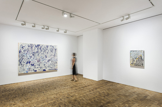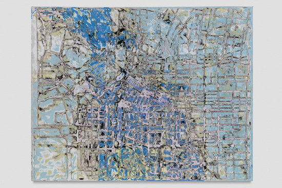 A Hauser & Wirth abre ao público hoje, 27 de março, a exposição do norte-americano Mark Bradford. A mostra inaugura a nova filial da galeria na cidade de Hong Kong. As obras, inéditas, dão continuidade aos temas que Bradford vem explorando ao longo de toda sua carreira, especialmente as dinâmicas de poder dentro das estruturas sociais. O artista sempre se interessou pela noção de comunidade e, de forma fundamental, pelas coisas que separam um grupo de outro dentro da sociedade. Por outro lado, seus trabalhos lembram mapas e topografias, frequentemente evocando o vocabulário urbano e também a street art. Bradford coleta materiais promocionais distribuídos na rua, folders e flyers de promoções, eleições e causas humanitárias. Depois, esses impressos são incorporados à estrutura da pintura numa espécie de colagem de sentidos e, também, de materiais.