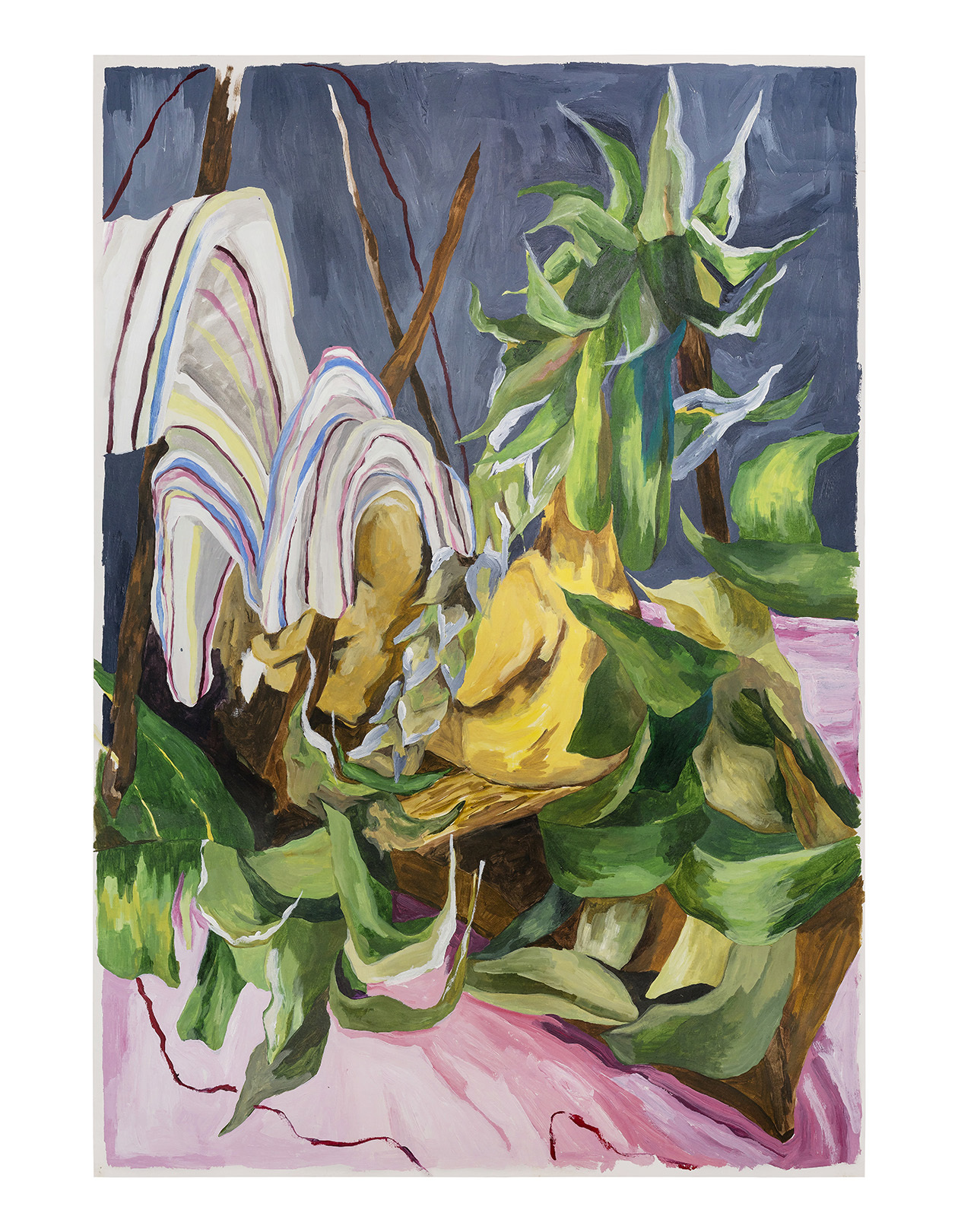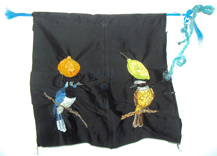 Suas pinturas, bordados e objetos lidam com temas como a mitologia rural e crenças populares, muitos deles como se fossem colagens de imagens e/ou objetos. Um exemplo é a obra “Saber Popular”, na qual o artista emprega o tradicional bordado, a porcelana fria e a madeira em uma composição híbrida. A manualidade é um eixo central na produção de Lanezan, não só pelo emprego das técnicas artesanais já mencionadas, mas também pelas pinceladas marcadas que evidenciam a presença do gesto do artista sobre a tela. Não há a pretensão de reproduzir a realidade da natureza ou de representar cenas concretas – suas pinturas oscilam entre uma quase-abstração e um desejo de captar a essência dos objetos, mais do que sua forma.