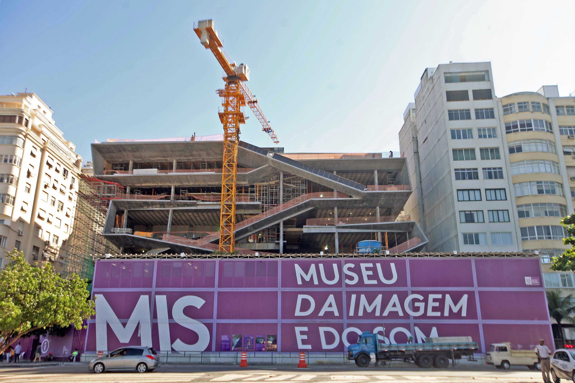 As obras, iniciadas em 2010, avançaram de forma irregular ao longo dos anos seguintes. Problemas de financiamento, mudanças de governo e entraves administrativos provocaram sucessivas paralisações, transformando a instituição em um dos exemplos mais emblemáticos de projetos culturais atravessados por instabilidade institucional no país. Só que, ao longo desse período, o edifício inacabado passou a integrar a paisagem da cidade como uma promessa continuamente adiada. A fachada sinuosa, que remete ao calçadão desenhado por Burle Marx, virou, um dos elementos mais reconhecíveis do projeto.