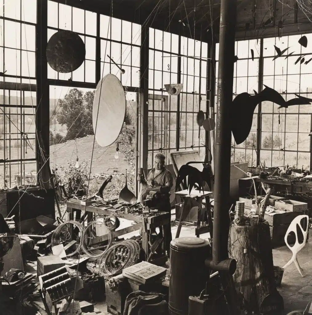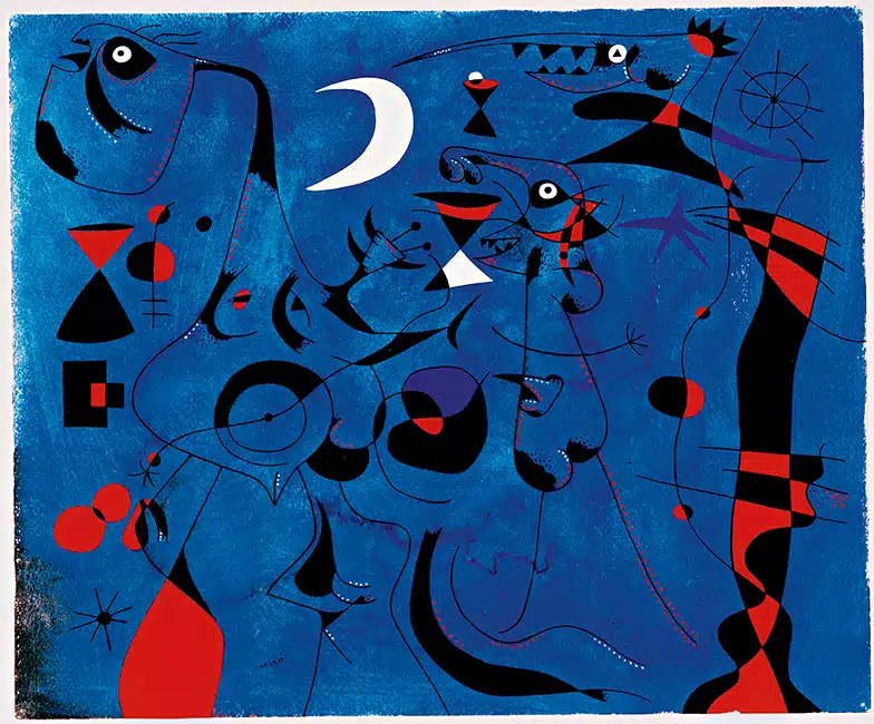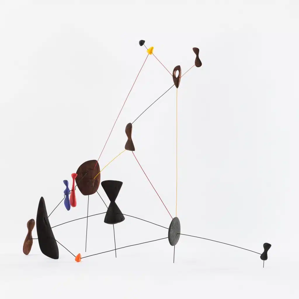Apesar de suas personalidades contrastantes – Miró, tímido e introvertido, e Calder, extrovertido e performático –, os dois artistas formaram um vínculo profundo, descrito por Miró como uma “amizade de alma”. Eles compartilhavam a visão de que a abstração era um campo aberto para experimentações dinâmicas. Calder, rompendo com as tradições da escultura com seus móbiles e stabiles, trouxe uma dimensão lúdica e interativa à arte ao incorporar movimento e equilíbrio, enquanto Miró, com suas pinturas caracterizadas por formas orgânicas, linhas precisas e cores primárias, explorou o inconsciente e a imaginação.
