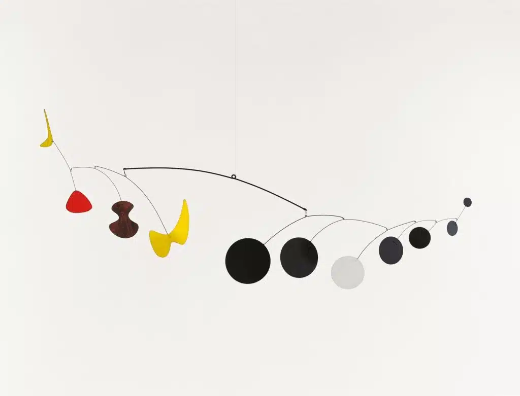A parceria entre Mindlin e Calder resultou em uma integração harmoniosa entre a escultura móvel e a arquitetura modernista brasileira, com os móbiles de Calder servindo como pontos focais em muitas residências modernistas de arquitetos como Jacob Ruchti, Miguel Forte, Jorge Moreira, Marcelo e Maurício Roberto, e Rino Levi. Calder doou vários móbiles ao Brasil, incluindo a “Viúva Negra”, uma das peças mais importantes da atual mostra. Em termos de tamanho, força e presença, a obra domina o espaço em uma sala exclusiva no Instituto.