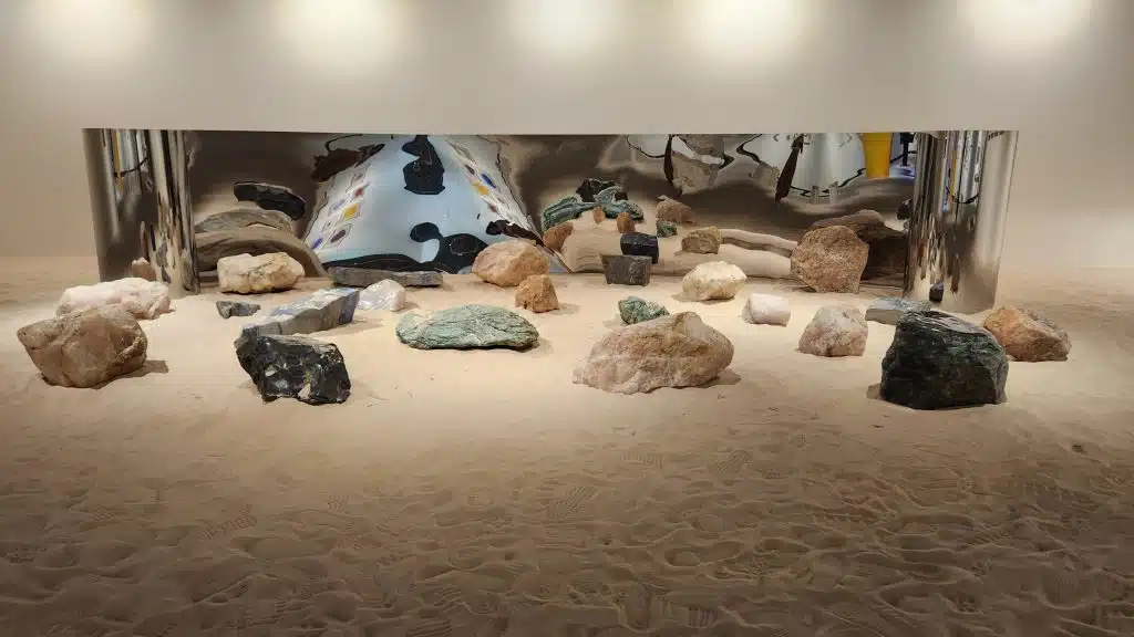De “Paisagem Cromática” ainda vale destacar obras como a célebre “Caminhos das Cores” (2001-2020), apresentada inclusive na 29° Bienal de São Paulo, que propõe uma imersão cromática para os visitantes fazendo uma alusão aos “Penetráveis” de Hélio Oiticica, e “Caminho das Cores do Escuro” (2001), que cria uma paisagem de pedras naturais em diálogo com um material “moderno”, o aço inoxidável.