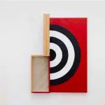 As pinturas articuladas de Ana Linemmann foram o grande destaque do estande da Periscópio. “Pintura Alvo” e outras peças de diferentes configurações em placas de cedro conjugadas por dobradiças instigavam o público no espaço a elocubrar sobre as possíveis configurações dos trabalhos.