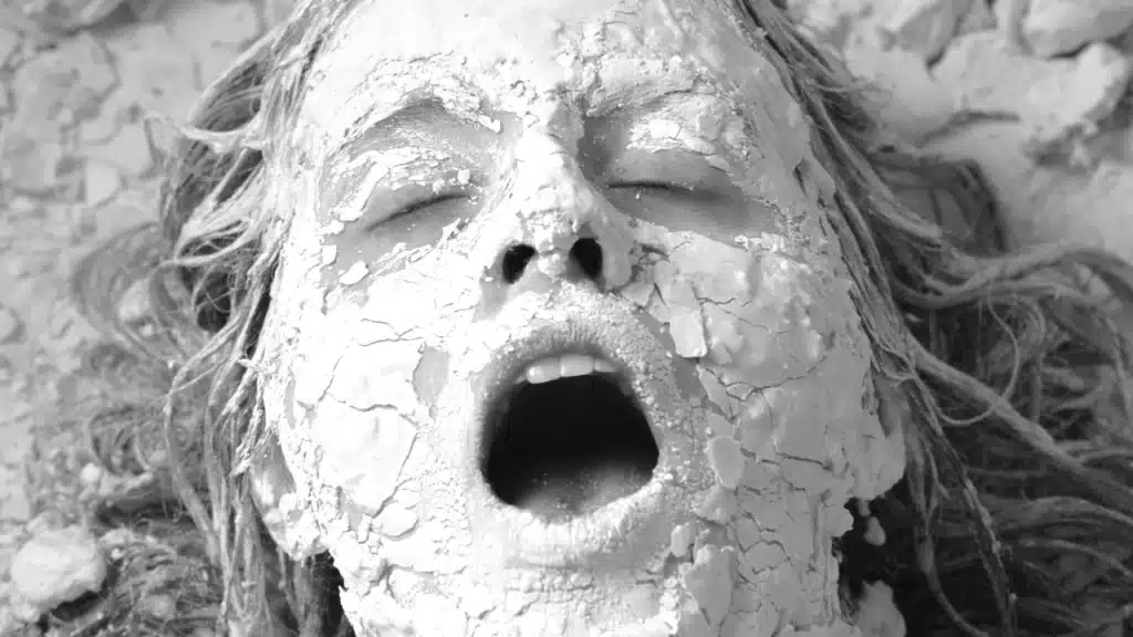 Cada peça apresentada, entre fotografias, esculturas e vídeos, passou por um processo de construção em performance. São cortinas de látex penduradas como vultos, fotografias impressas em pedaços de parede, esculturas de gesso como vestígios da interação com o corpo da performer, vídeos e sons —os últimos, por sua vez, remetem a uma casa fantasmagórica em ruínas.