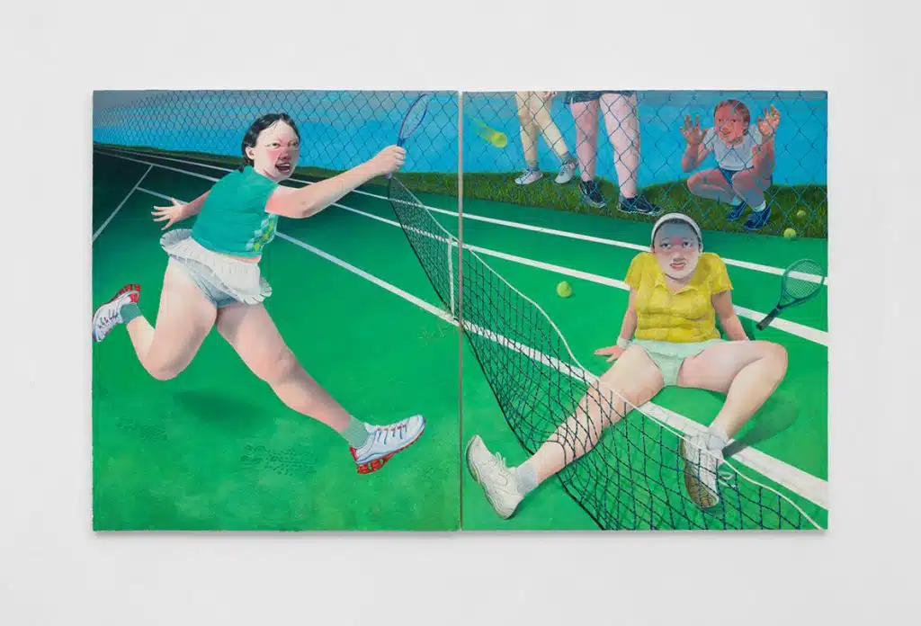 Em 2019, ela cria uma série de retratos de tenistas. No entanto, mais do que as performances atléticas, nesta série Park está interessada nas emoções humanas que ficam à flor da pele e se acentuam na linguagem corporal. No díptico “Sean and Brenda” [Sean e Brenda], a artista se concentra nos rostos dos atletas que se deformam em caricaturas. Embora o corpo inteiro dos retratados não esteja visível e nos faltem detalhes sobre o andamento da partida, as expressões faciais revelam a tensão do momento pressionado pelas expectativas da competição.