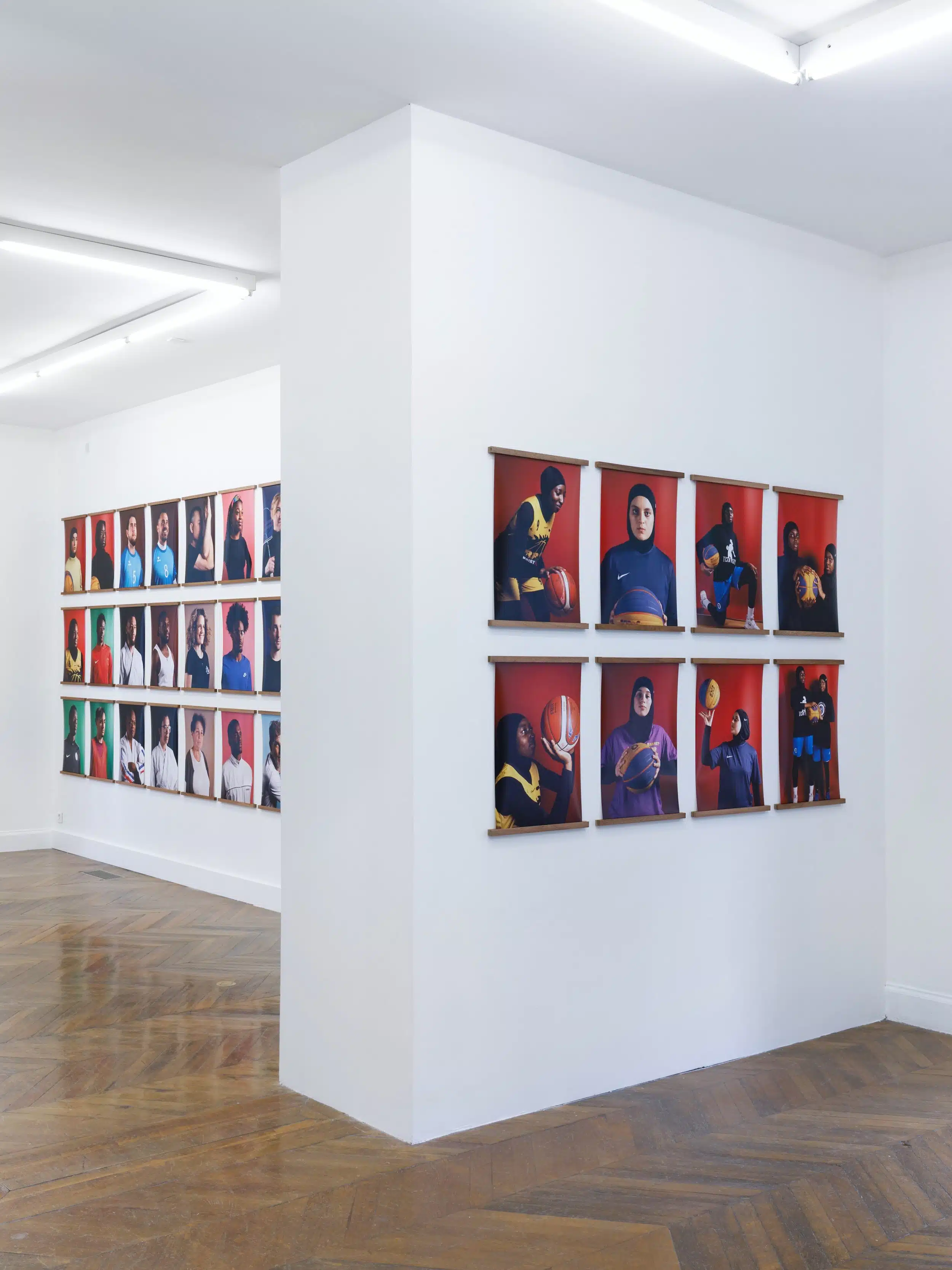 No conjunto de retratos impressos em pequenos formatos e agrupados em páginas, – remetendo aos álbuns de figurinhas, culturalmente populares durante grandes campeonatos esportivos –, destacam-se as imagens de jovens muçulmanas do movimento Basket pour Toutes [Basquete para Todas], que jogam basquete usando véu, enfrentando a proibição na França.