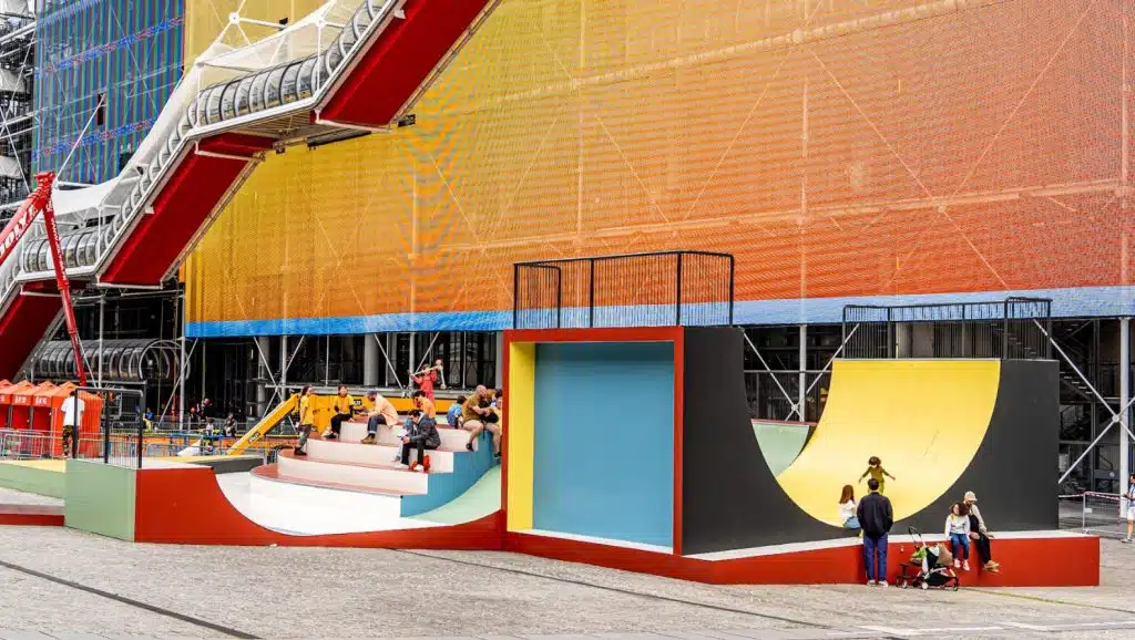 Especialmente para as Olimpíadas de Paris, o artista francês e autor de três ensaios sobre formas e espaços do skate, projetou a instalação “Cycloïd Piazza” [Praça Cicloide] em parceria com o arquiteto Jean-Benoît Vétillard para a praça externa do Centre Pompidou. Sendo uma obra pública, aberta à interação, o trabalho entende o esporte como um modelo relacional popular, enquanto discute questões formais da abstração geométrica.
