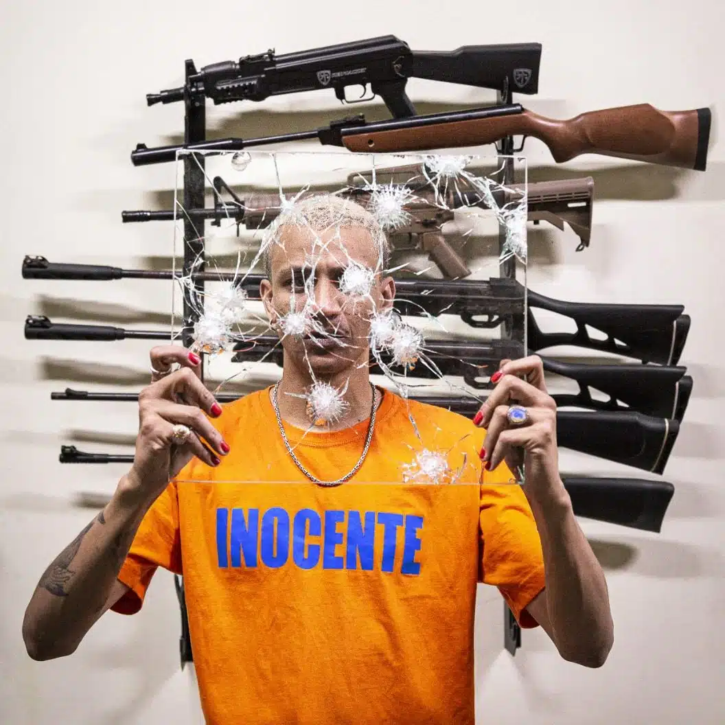 A coletiva também é recheada de obras inéditas como a projeção digital do NFT Marielle Franco e a Bandeira que traz a inscrição “democracia, justiça, paz” no lugar do original “ordem e progresso”, ambas de Cildo Meireles. Vale citar também uma das obras de Ernesto Neto que questiona: “em que data celebramos o fim da ditadura?”. E ainda, uma faixa de tecido pintada por Julia Xavante que carrega a frase “Eles Combinaram de Nos Matar, e Nós Combinamos de Não Morrer”.