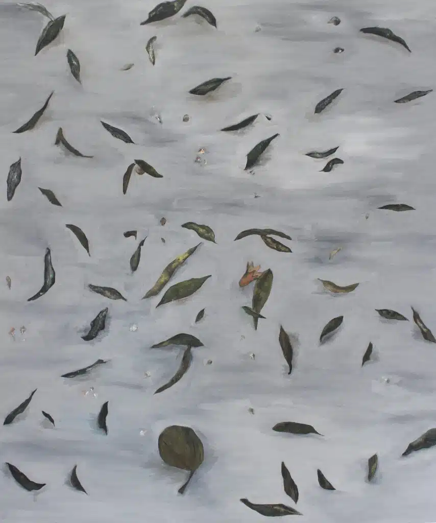 O isolamento sempre foi algo presente em sua produção, que teve ao longo dos anos como cenários lugares afastados e retiros. Os trabalhos de report from the ocean currents são exemplo disso, concebidos tendo como base uma “expedição estética” que ela realizou na remota Reserva Nacional de Ilha do Cardoso em 2016. Essas obras foram desenvolvidas a partir de materiais que foram coletados desse local. Agora, na exposição no auroras, Renata volta à pintura, trazendo uma “generosa atenção aos detalhes da vida cotidiana”, como folhas ao chão ou mesmo “coquinhos” que amadureceram e caíram do coqueiro.