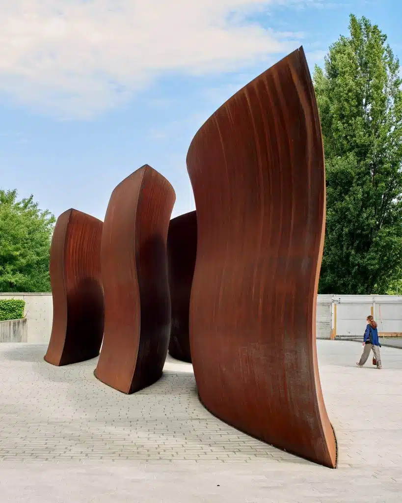 Parte do acervo colossal de Richard Serra, “Fulcrum” possui 16,7m de altura. No entanto, apesar de sua magnitude, a obra encanta os visitantes e moradores de Londres por trazer em suas placas de metal tons de simplicidade e elegância.
