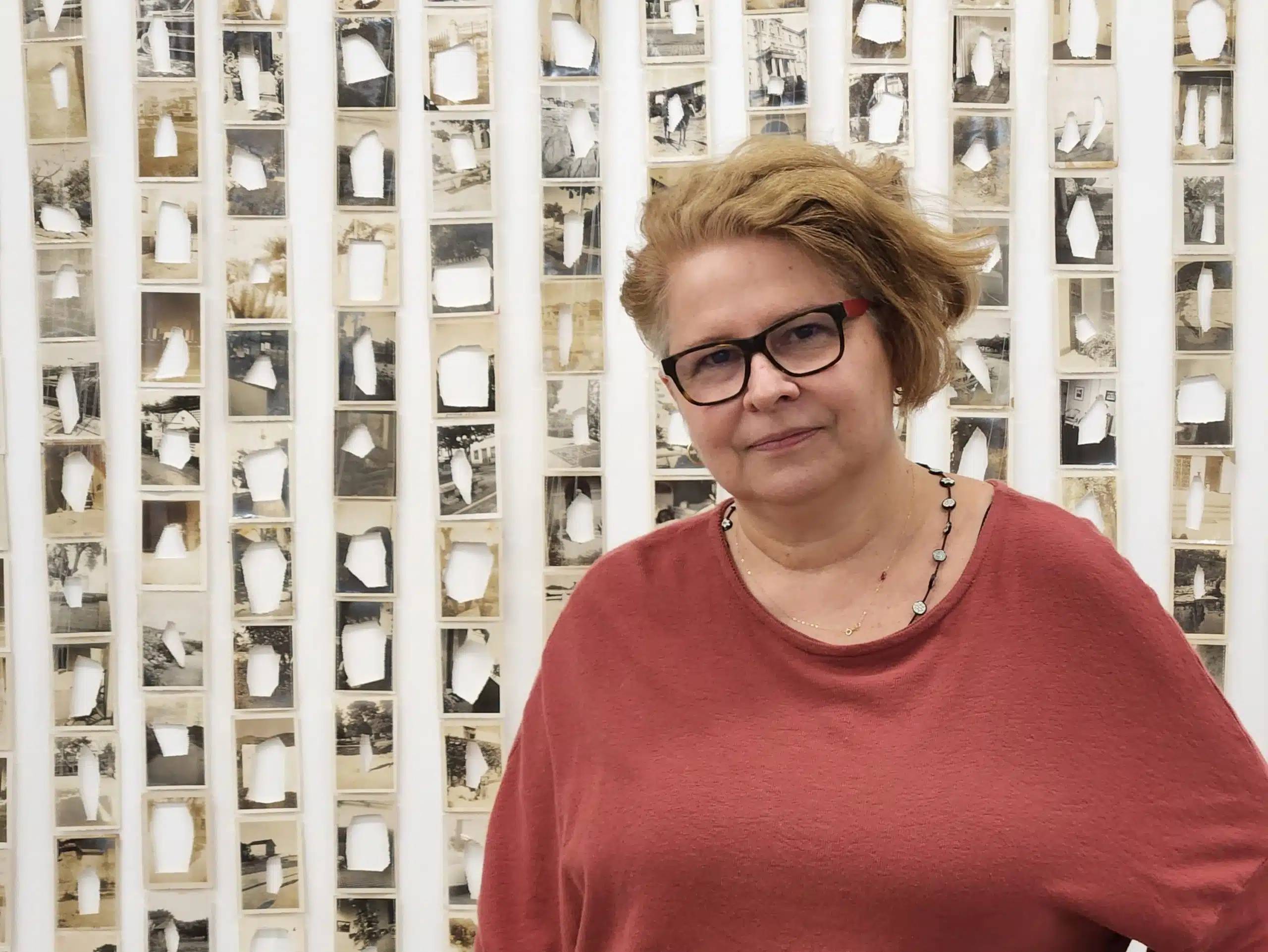 Como é recorrente na prática da artista, um grande acervo de fotografias analógicas coletado ao longo de anos é empregado em trabalhos com características escultóricas e instalativas. Porém, Cupello inova ao incluir pedras e concreto em sua produção.