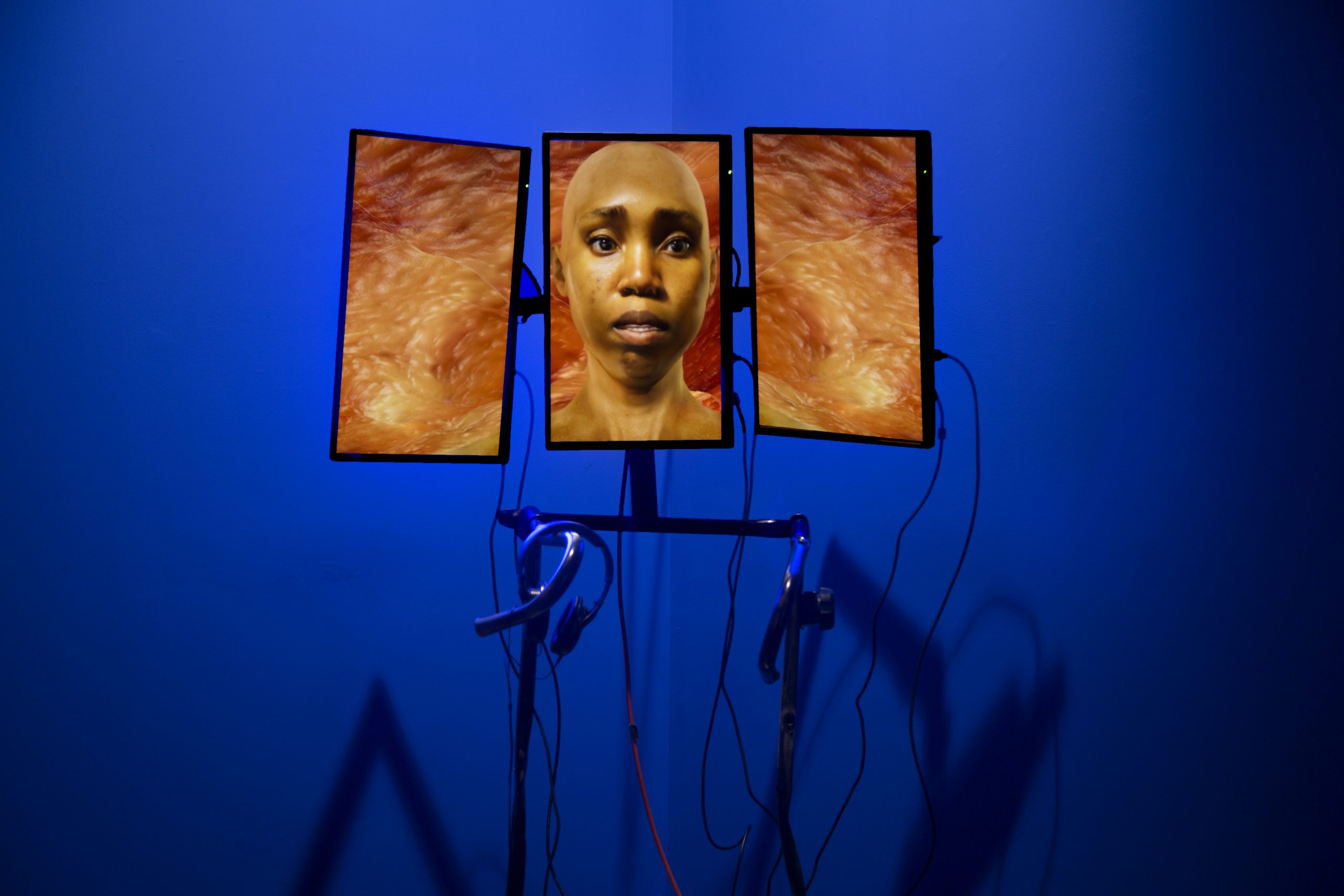 Primeira individual na Europa da norte-americana Sondra Perry (n. 1986), “Typhoon” [Tufão] explora a intersecção entre cultura digital, identidade negra e estruturas de poder. A produção de Perry se debruça sobre a herança afro-americana e a condição da mulher negra, tomando sua narrativa pessoal como ponto de partida, através vídeos, instalações e performances. “Typhoon” é uma instalação site-specific que incorpora obras pré-existentes, incluindo “Wet and Wavy Looks – Typhoon coming on” (2016), que se apropria do registro digital da pintura “O Navio Negreiro” (1840) de JMW Turner.