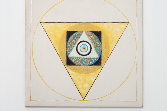 Uma palavra no canto do quadro. Um sinal gráfico que pode ser lido tanto como um símbolo matemático, quanto como uma mira. Em algumas pinturas, quase não há imagem, apenas ...