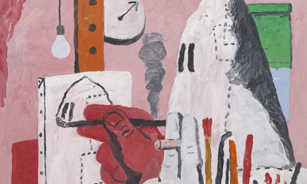 Caminhando pelo corredor do segundo andar do Pavilhão da Bienal, uma pintura de Philip Guston arrebata o olhar de qualquer um que passe. Parte do estande da Almeida & Dale, ...