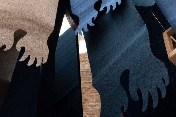 A artista carioca Cristina Salgado apresenta no Octógono da Pina Luz a instalação A mãe contempla o mar, uma obra monumental construída a partir de dezenas de faixas de tapetes ...