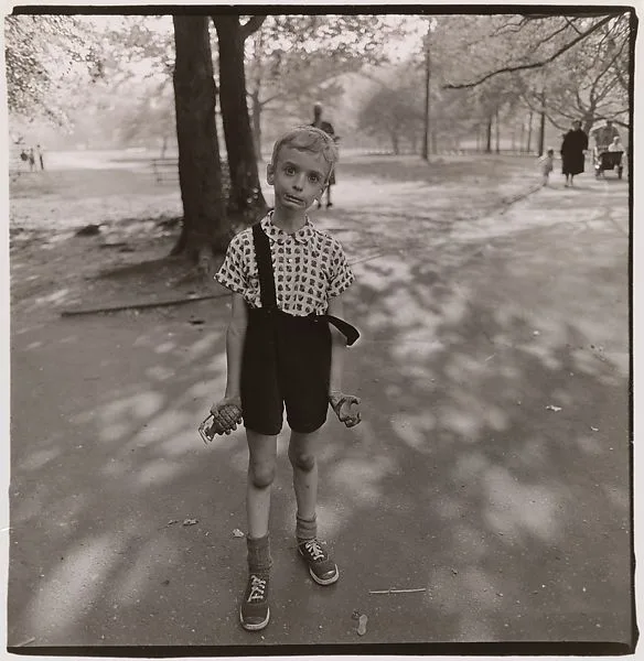 Uma imagem icônica que incorpora a estranha tensão entre tolice infantil e violência primária, esta se tornou uma das fotos mais famosas da história do meio. A transição histórica da América do isolacionismo complacente da década de 1950 para a turbulência sociopolítica que surgiria no final dos anos 1960 e 1970 parece ferver sob a superfície dessa imagem, ressaltando a presciência de Arbus e a compreensão intuitiva de seu tempo.