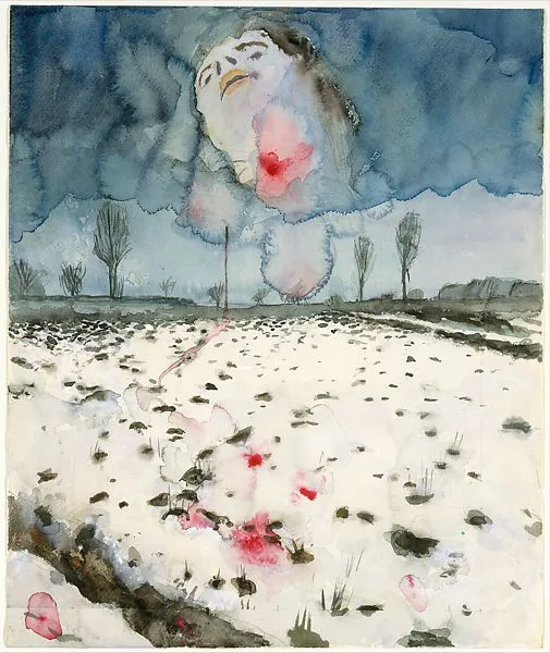 A contemplação de paisagens selvagens ou “sublimes” era uma marca registrada da produção de quadros da era romântica, e a própria terra servia como um poderoso símbolo do corpo nacionalista alemão e de seu domínio, promovido durante o período nazista sob o slogan Blut und Boden (Sangue e Solo). Nesta aquarela, no entanto, a terra foi arada rudemente e coberta com neve, e as árvores sobressalentes no fundo emprestam um tom desolador à cena. A cabeça sem corpo de uma mulher ergue-se acima do campo, manchada com aquarela vermelho-sangue; este mártir é uma personificação da terra, agora manchada pelos acontecimentos da história humana.