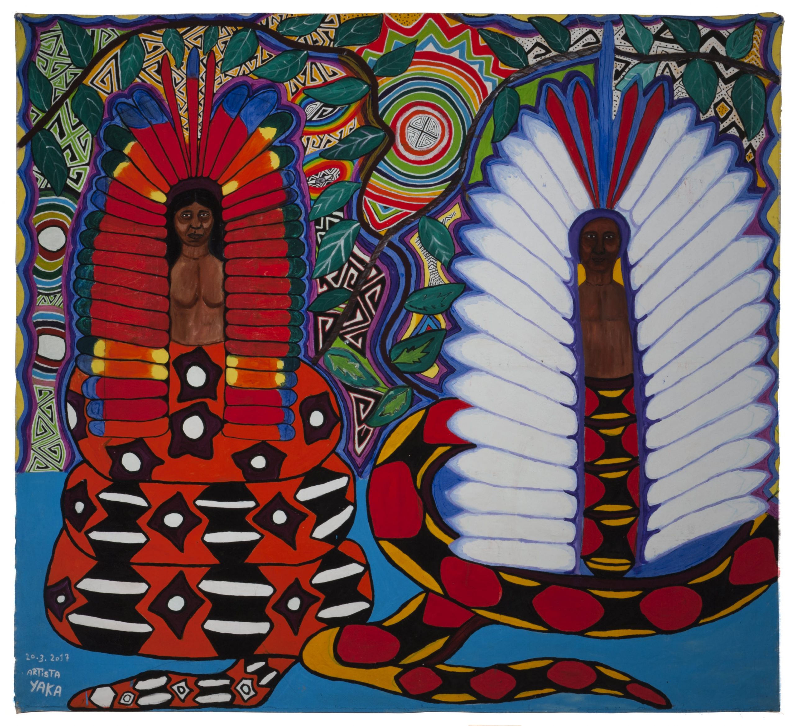 A exposição “Yube Nawa Aibu – A Mulher Jiboia Encantada” apresenta obras de Rita Dani, Yaka, Sebastião Paulino Mana e Menegildo Isaka, artistas que fazem parte da primeira geração de pintores do povo da Floresta Amazônica Huni Kuĩ formados pela escola viva (derivada do encontro com a formalização do ensino a partir dos anos 80, quando começaram a usar lápis e papel). Esta exposição é um desdobramento da mostra “Una Shubu Hiwea – Livro Escola Viva do Rio Jordão”, apresentada no Itaú Cultural (São Paulo) entre dezembro de 2017 e fevereiro de 2018, com organização do pajé Dua Busë e de outros representantes Huni Kuĩ, com colaboração da editora Anna Dantes e do artista Ernesto Neto.